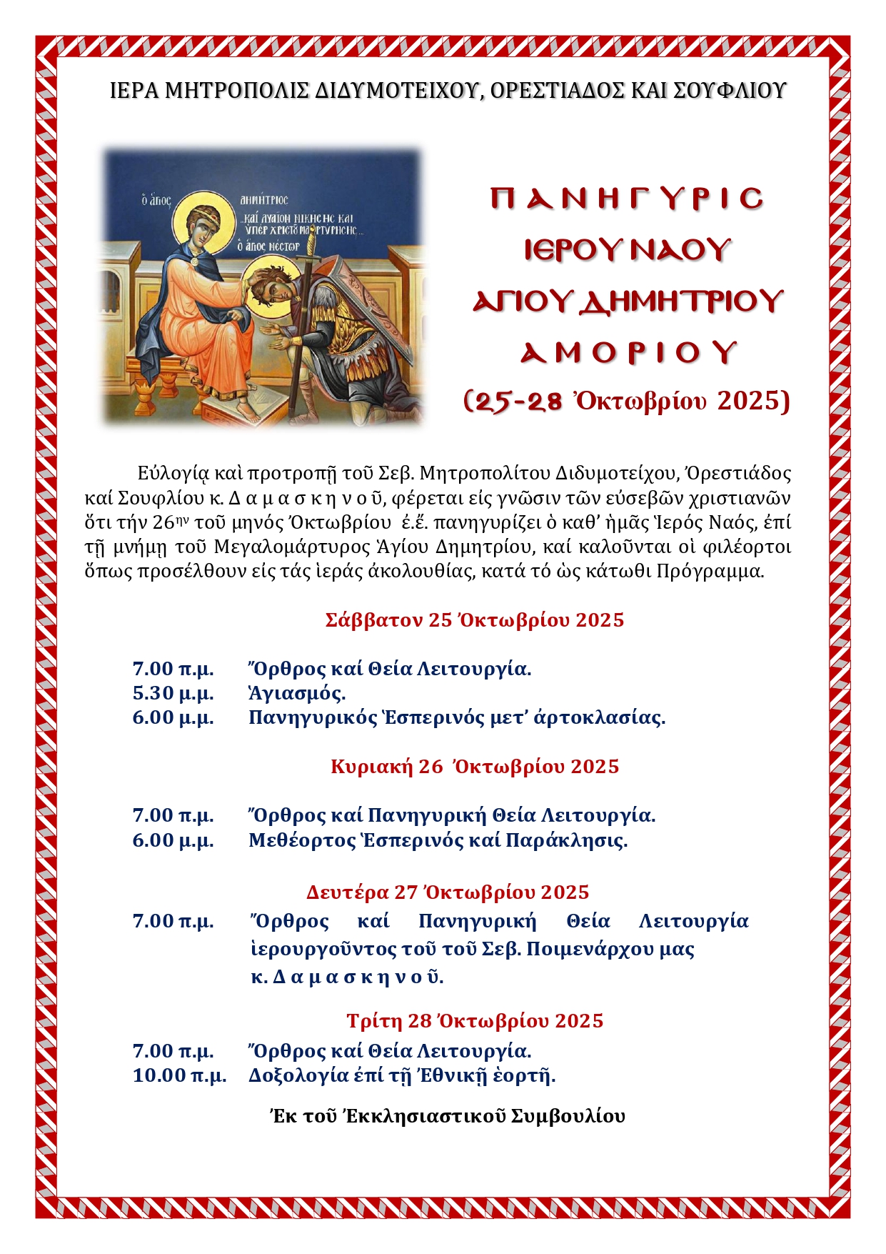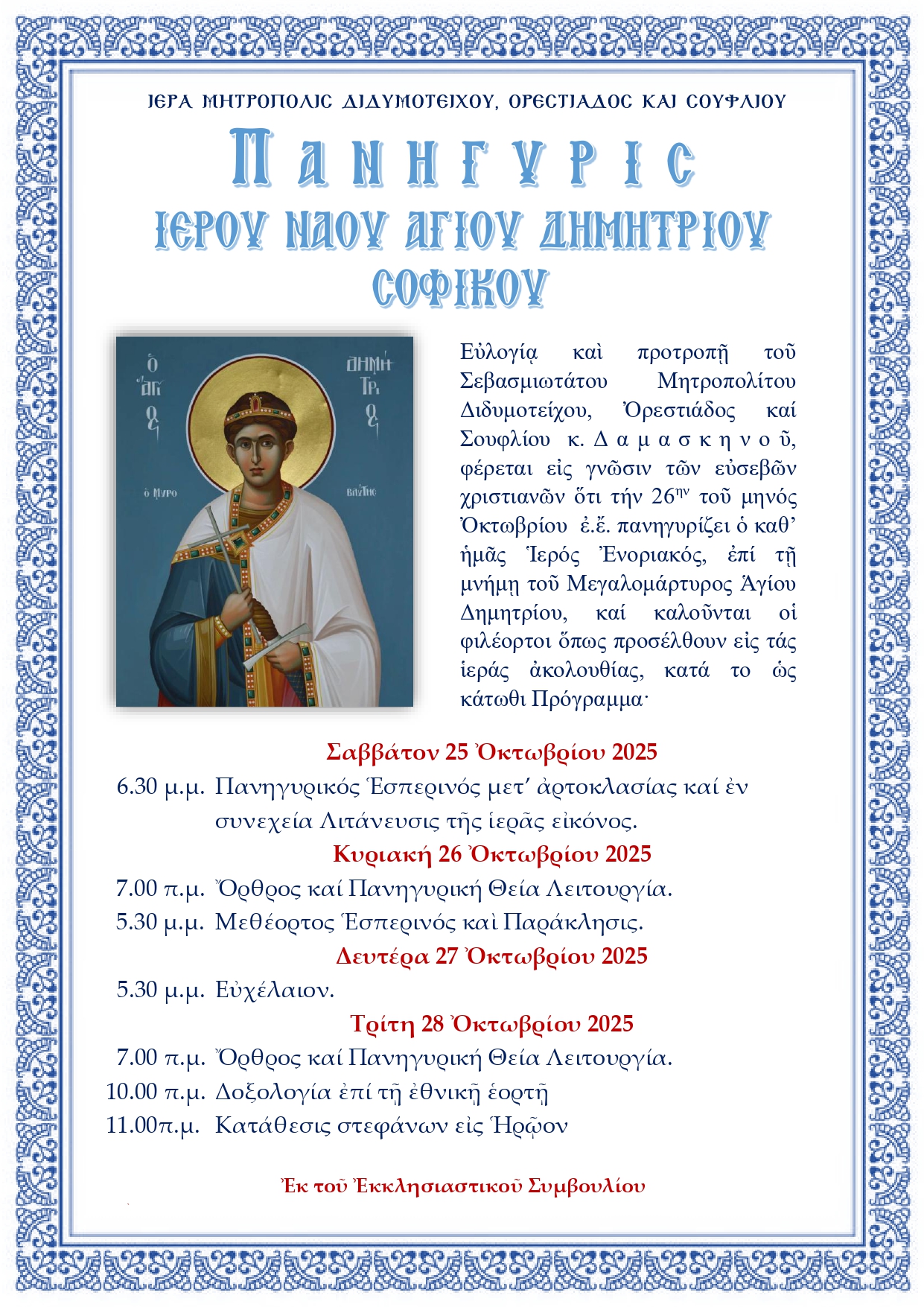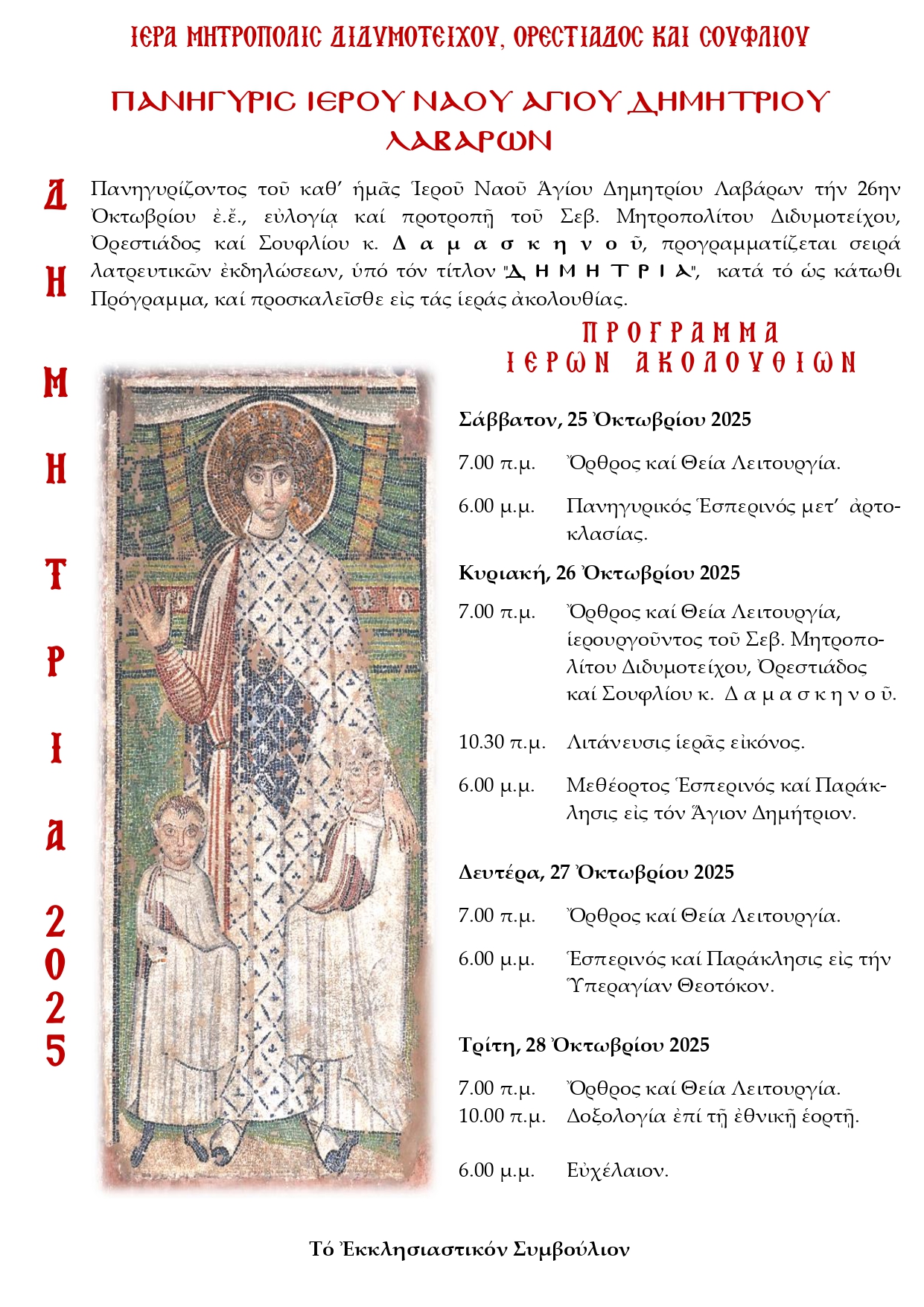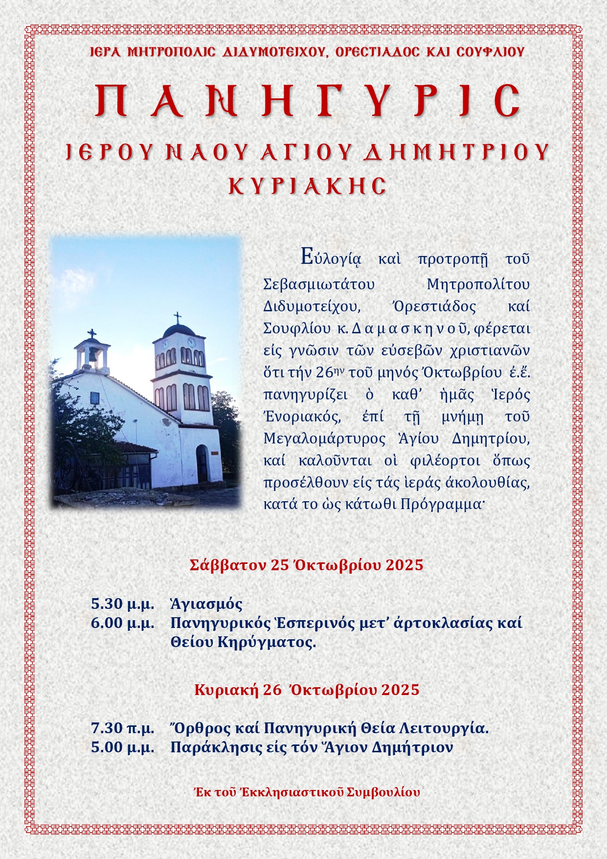 ΙΕΡΟΥ ΝΑΟΥ ΑΓΙΟΥ ΔΗΜΗΤΡΙΟΥ ΚΥΡΙΑΚΗΣ