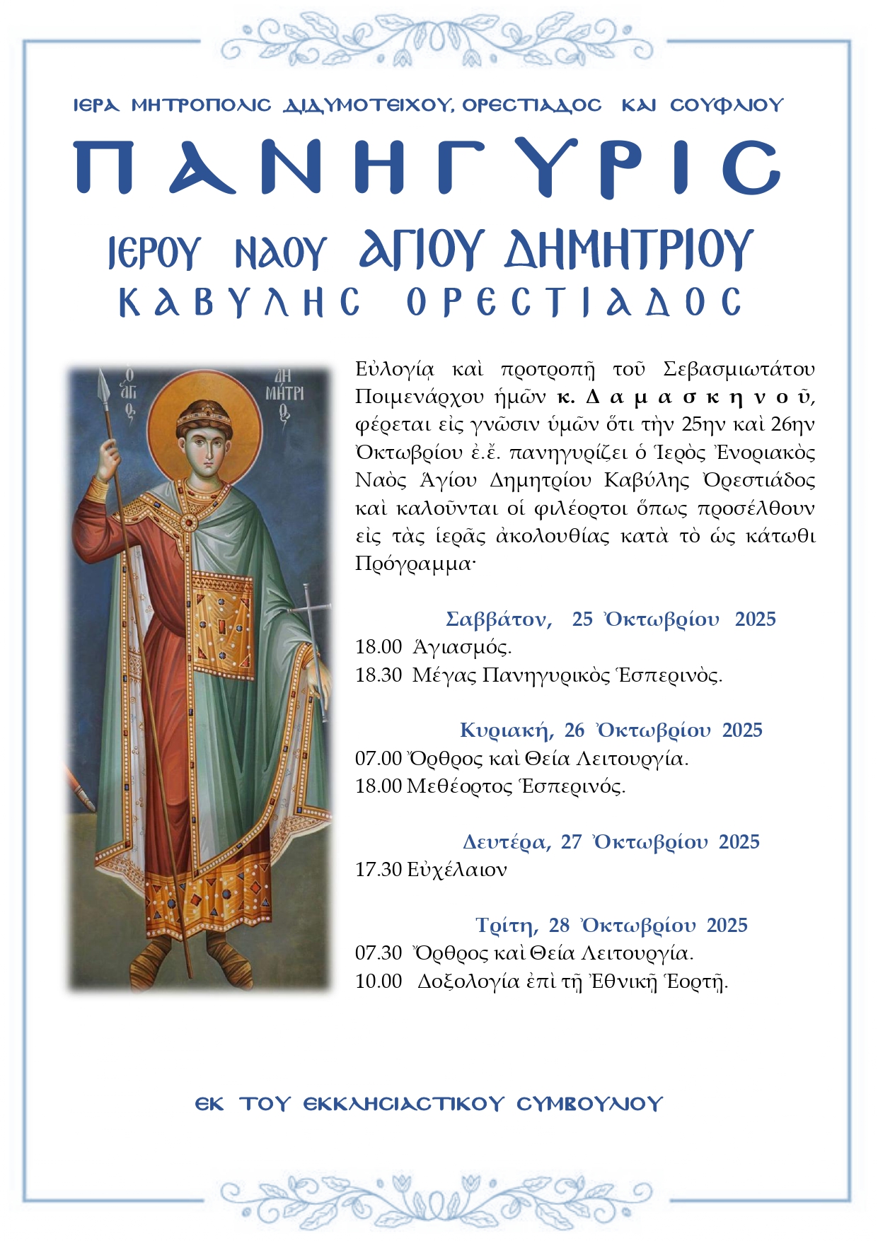 ΙΕΡΟΥ ΝΑΟΥ ΑΓΙΟΥ ΔΗΜΗΤΡΙΟΥ ΚΑΒΥΛΗΣ