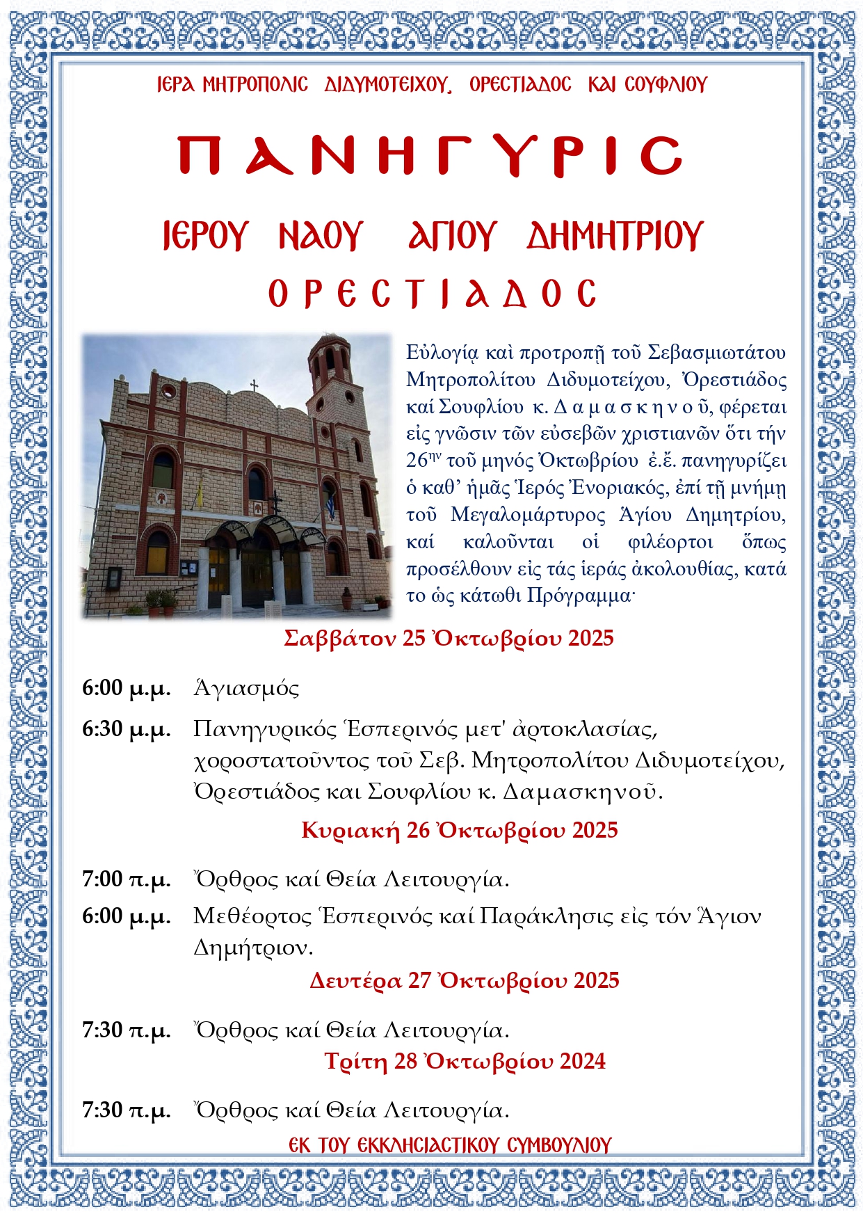 ΙΕΡΟΥ ΝΑΟΥ ΑΓΙΟΥ ΔΗΜΗΤΡΙΟΥ ΟΡΕΣΤΙΑΔΟΣ