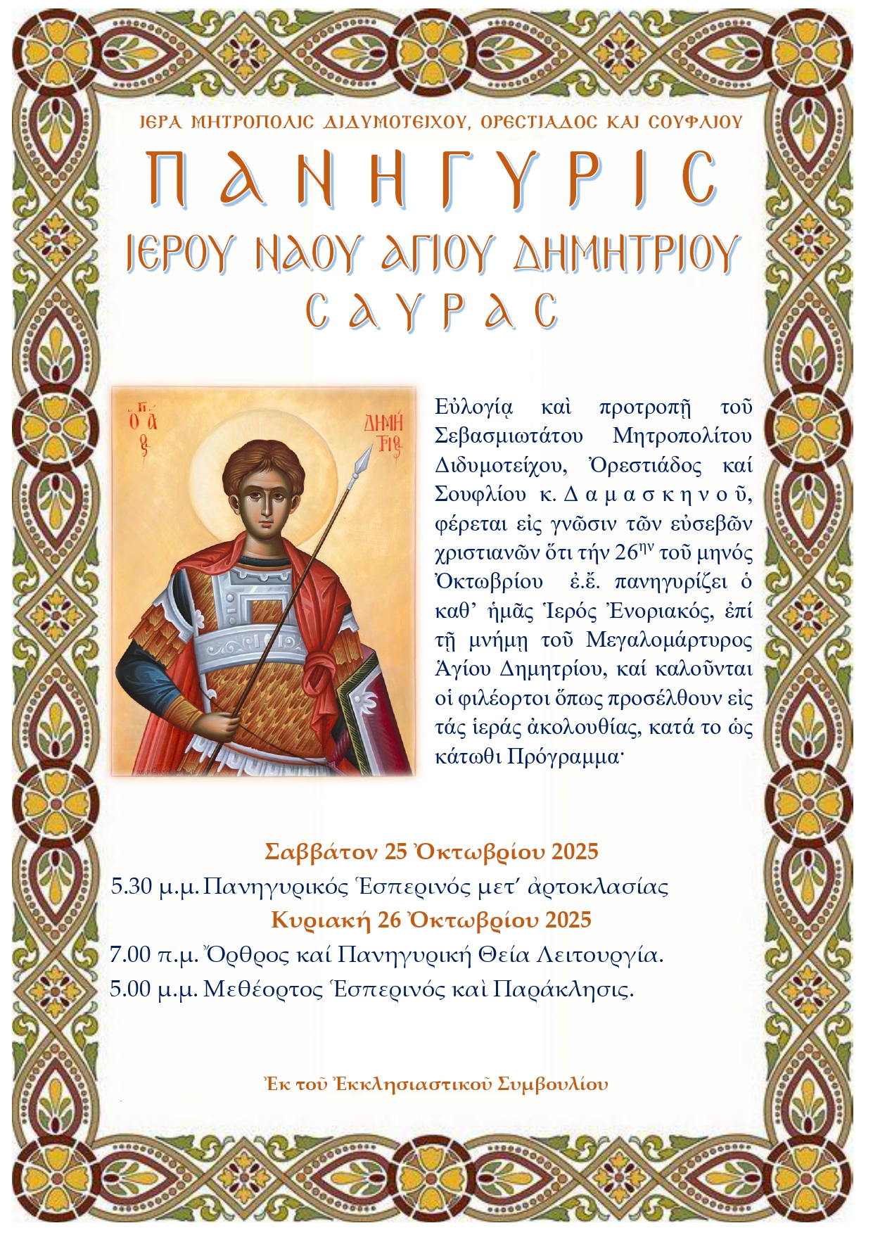 ΙΕΡΟΥ ΝΑΟΥ ΑΓΙΟΥ ΔΗΜΗΤΡΙΟΥ ΣΑΥΡΑΣ