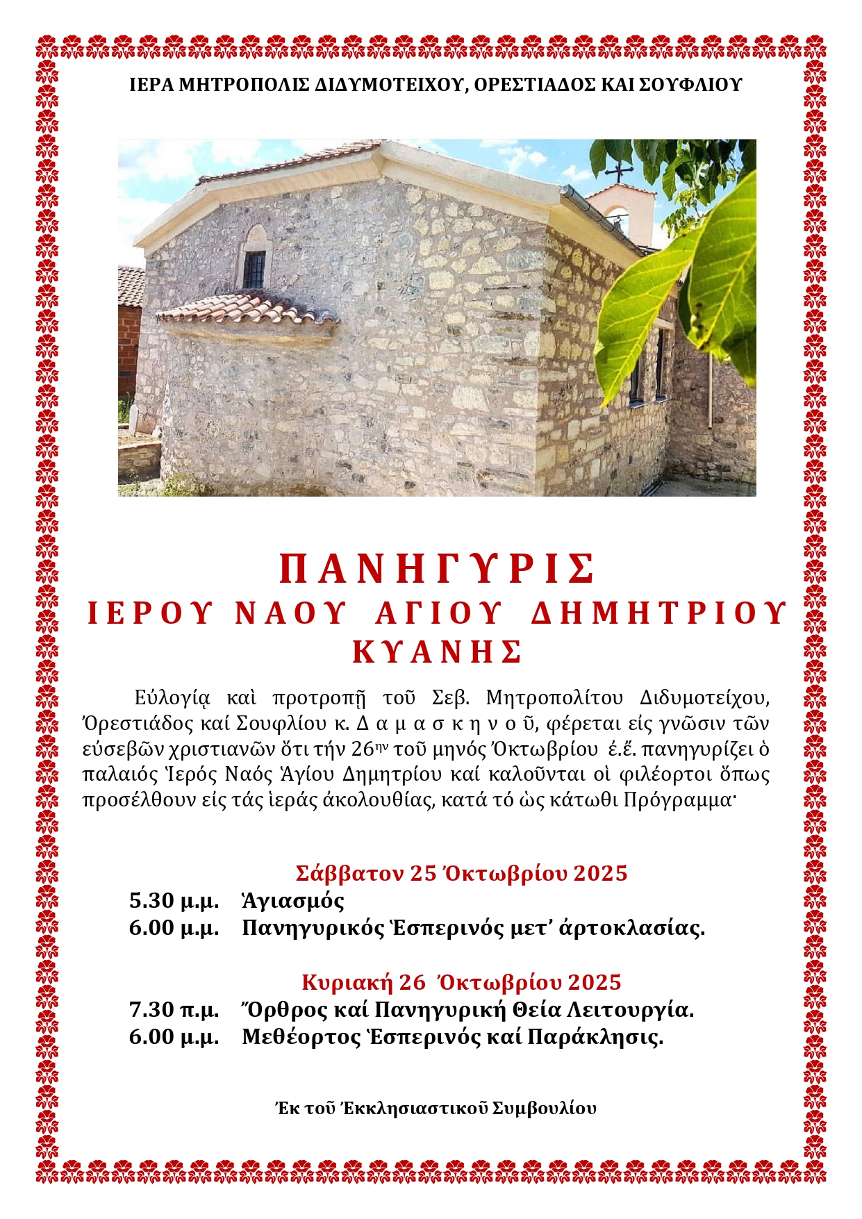 ΙΕΡΟΥ ΝΑΟΥ ΑΓΙΟΥ ΔΗΜΗΤΡΙΟΥ ΚΥΑΝΗΣ