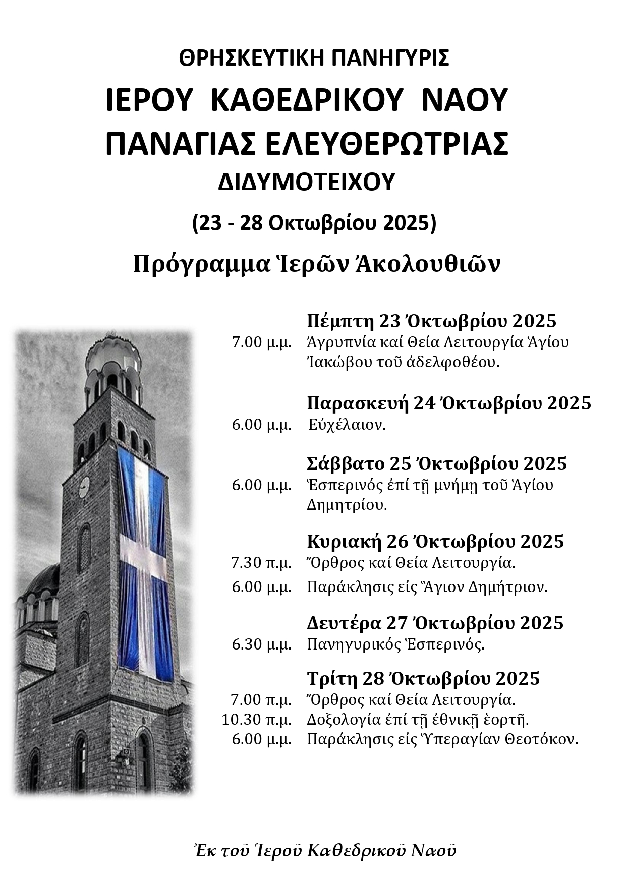 28. Ἐθνική Ἑορτή· Ὁ Ἱερός Καθεδρικός Ναός Παναγίας Ἐλευθερωτρίας Διδυμοτείχου.