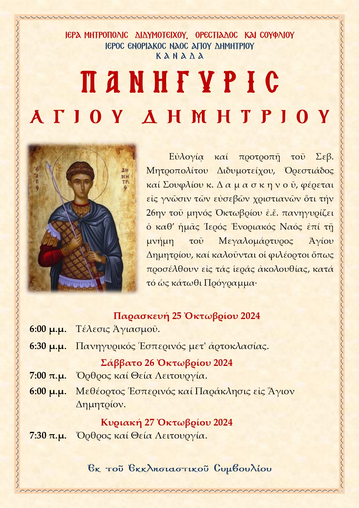 ΑΦΙΣΑ ΑΓΙΟΥ ΔΗΜΗΤΡΙΟΥ ΚΑΝΑΔΑ 2024 Δημοσιεύτηκε 10 Οκτωβρίου 2024 σε διαστάσεις 1241 × 1755 στην γκαλερί ΑΦΙΣΑ ΑΓΙΟΥ ΔΗΜΗΤΡΙΟΥ ΚΑΝΑΔΑ 2024