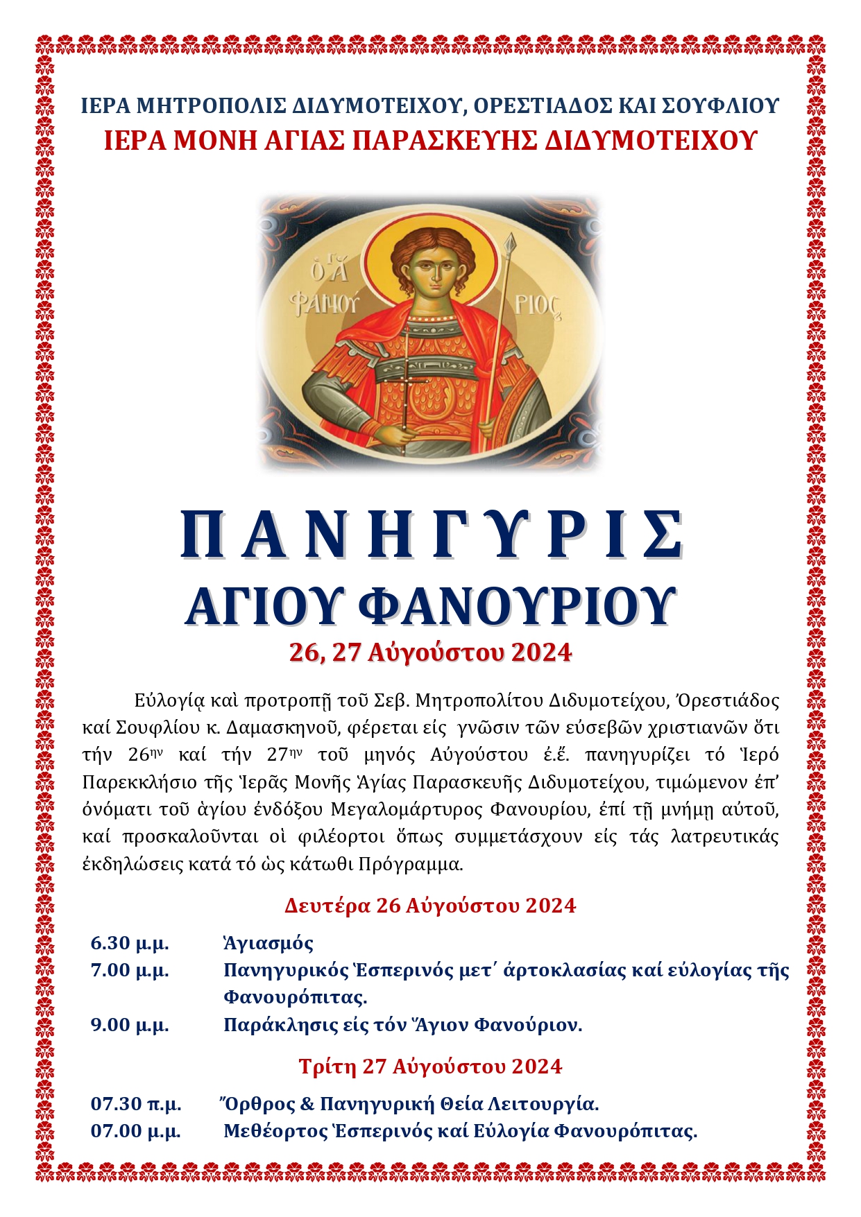 αφισα αγιου φανουριου 2024 Δημοσιεύτηκε 23 Αυγούστου 2024 σε διαστάσεις 1241 × 1755 στην γκαλερί αφισα αγιου φανουριου 2024