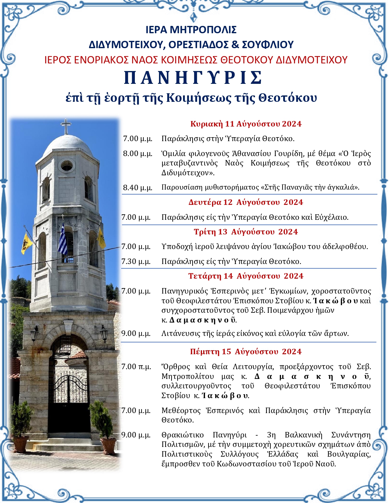 ΑΦΙΣΑ ΚΟΙΜΗΣΕΩΣ 2024 Δημοσιεύτηκε 2 Αυγούστου 2024 σε διαστάσεις 1275 × 1650 στην γκαλερί ΑΦΙΣΑ ΚΟΙΜΗΣΕΩΣ 2024
