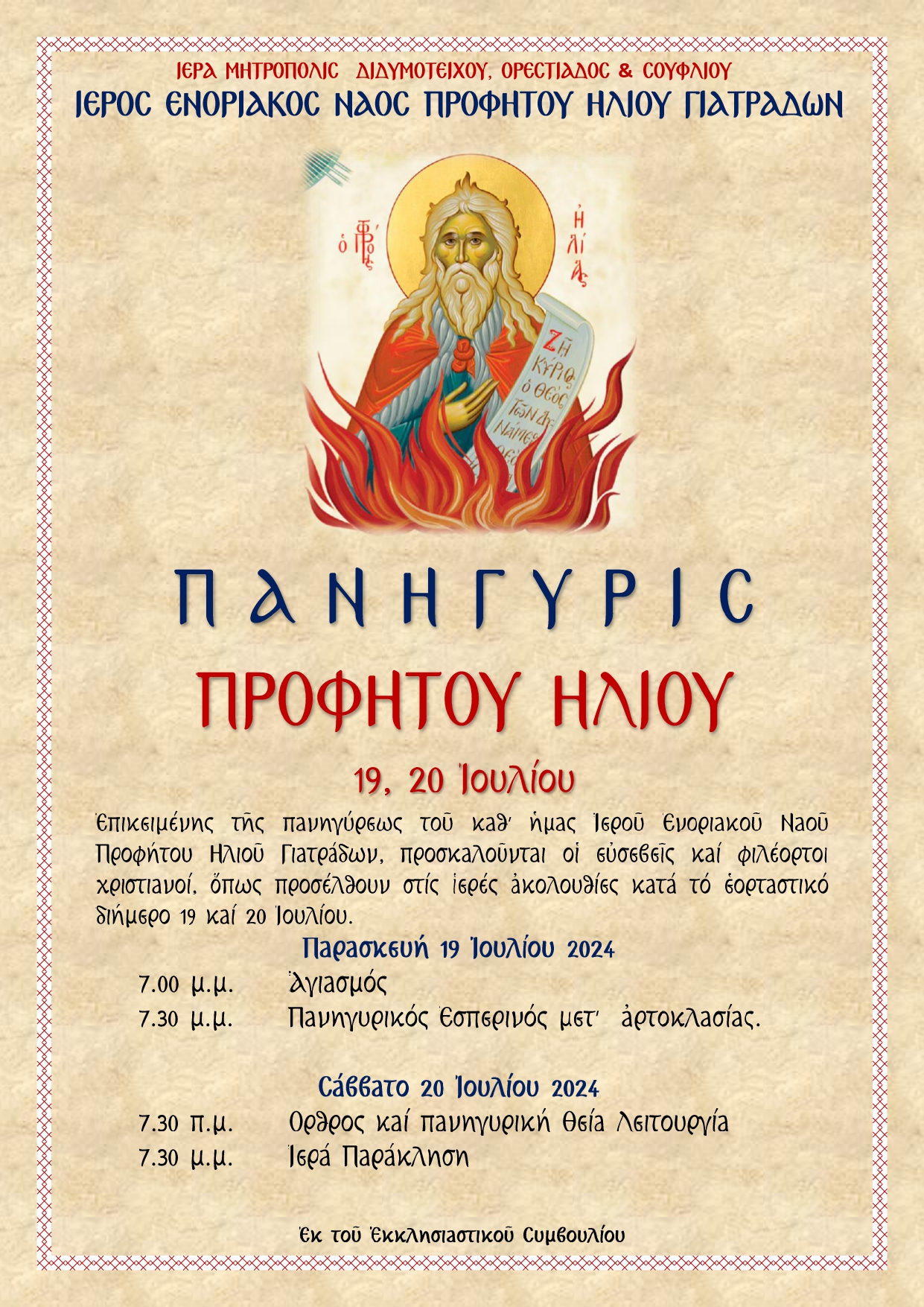 αφισα Προφ. Ηλία γιατραδων Δημοσιεύτηκε 5 Ιουλίου 2024 σε διαστάσεις 1241 × 1755 στην γκαλερί αφισα Προφ. Ηλία γιατραδων