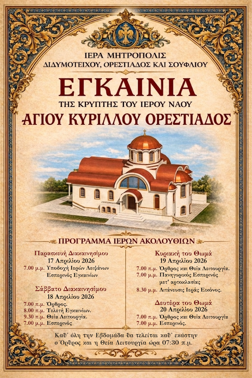 5 Ἱερομάρτυρος Παρθενίου· Εἰς Ἱερόν Μητροπολιτικόν Ναόν Ἁγίου Ἀθανασίου Διδυμοτείχου.