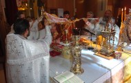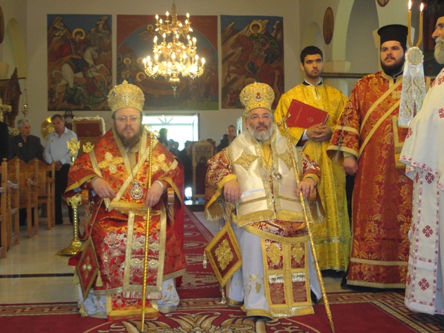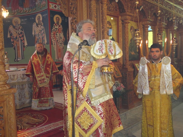 Αφ’εσπέρας ο επιχώριος Αρχιερεύς τέλεσε τον πανηγυρικό Εσπερινό στον ίδιο Ιερό Ναό.
