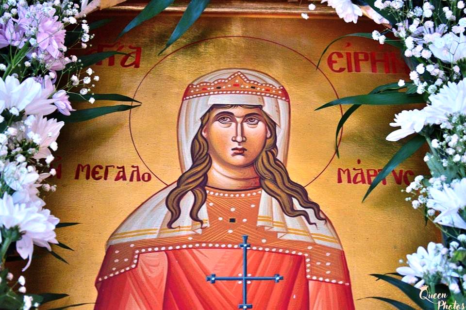 Η μνήμη της Μεγαλομάρτυρος Αγίας Ειρήνης εορτάσθηκε στον πανηγυρίζοντα φερώνυμο Ενοριακό Ναό στην Κυανή – Διδυμοτείχου με τη συμμετοχή πολυπληθούς εκκλησιάσματος και την παρουσία του Διοικητού της XVI Μεραρχίας Στρατηγού Δημ. Μπονώρα, αφ’ εσπέρας, και του Δημάρχου Διδυμοτείχου Διδυμοτείχου Παρ. Πατσουρίδη το πρωί της κυριωνύμου ημέρας. Ο Σεβ. Μητροπολίτης χοροστάτησε στην ακολουθία του Εσπερινού, ευλόγησε τους άρτους και μίλησε για τη ζωή και το μαρτύριο της αγίας.