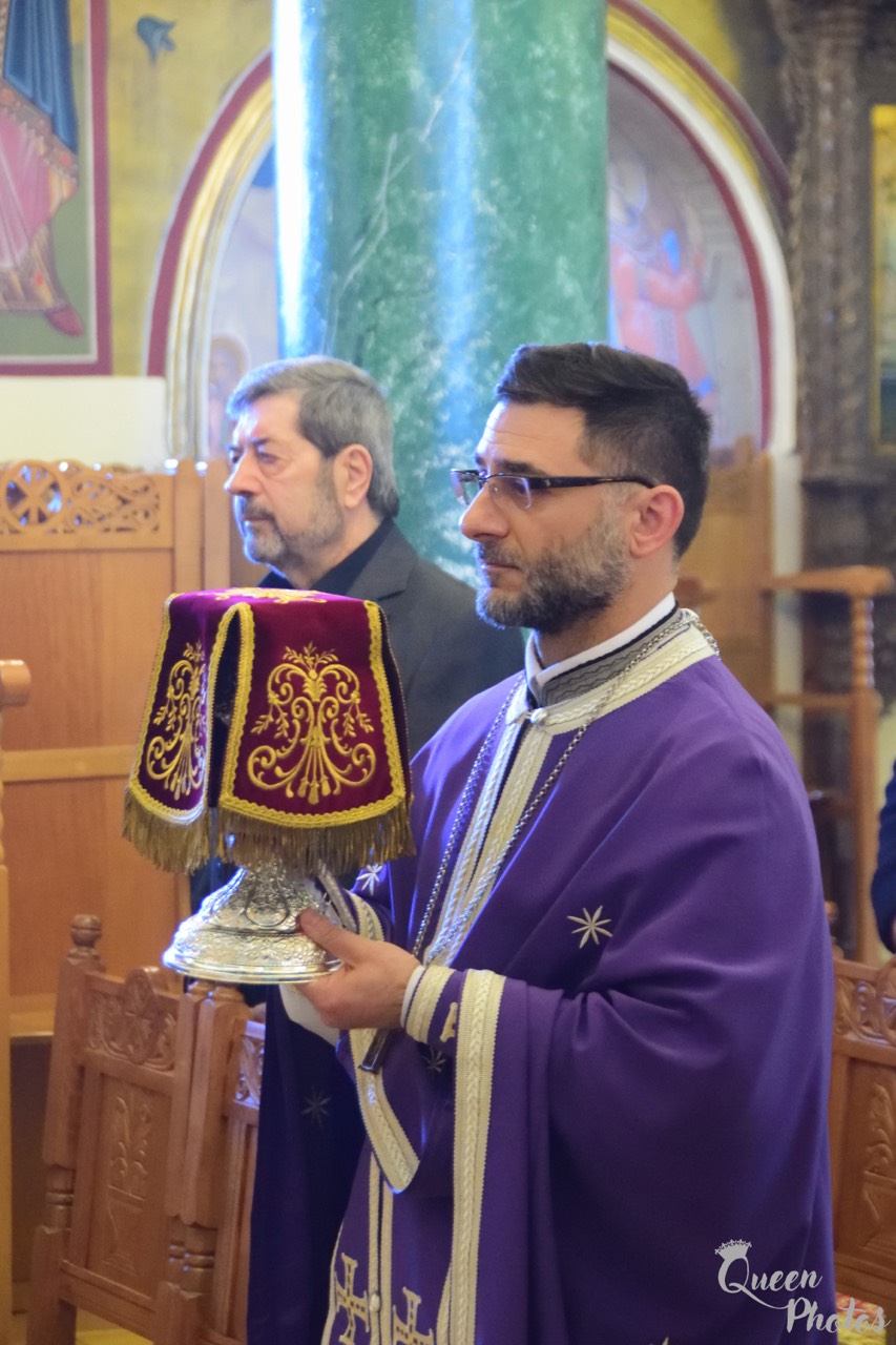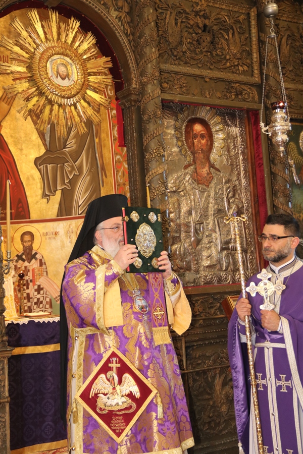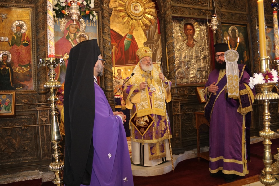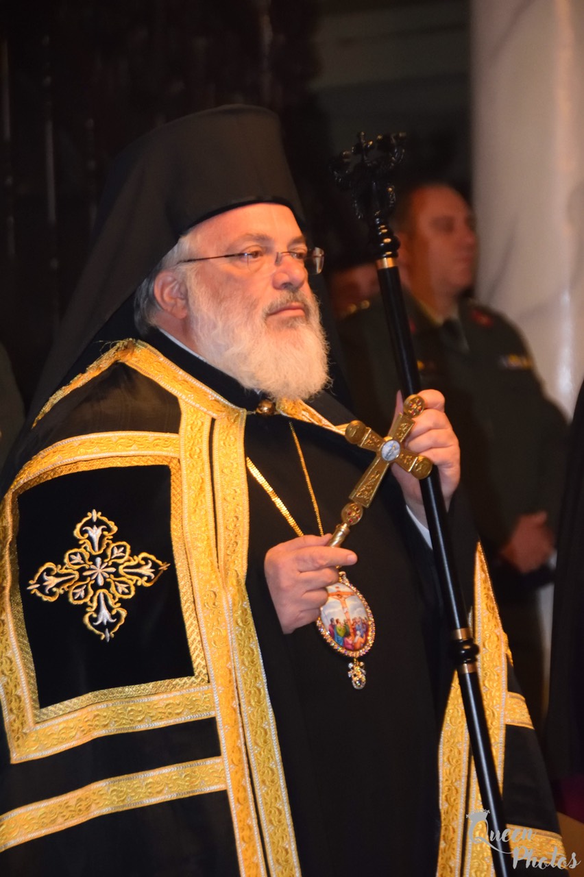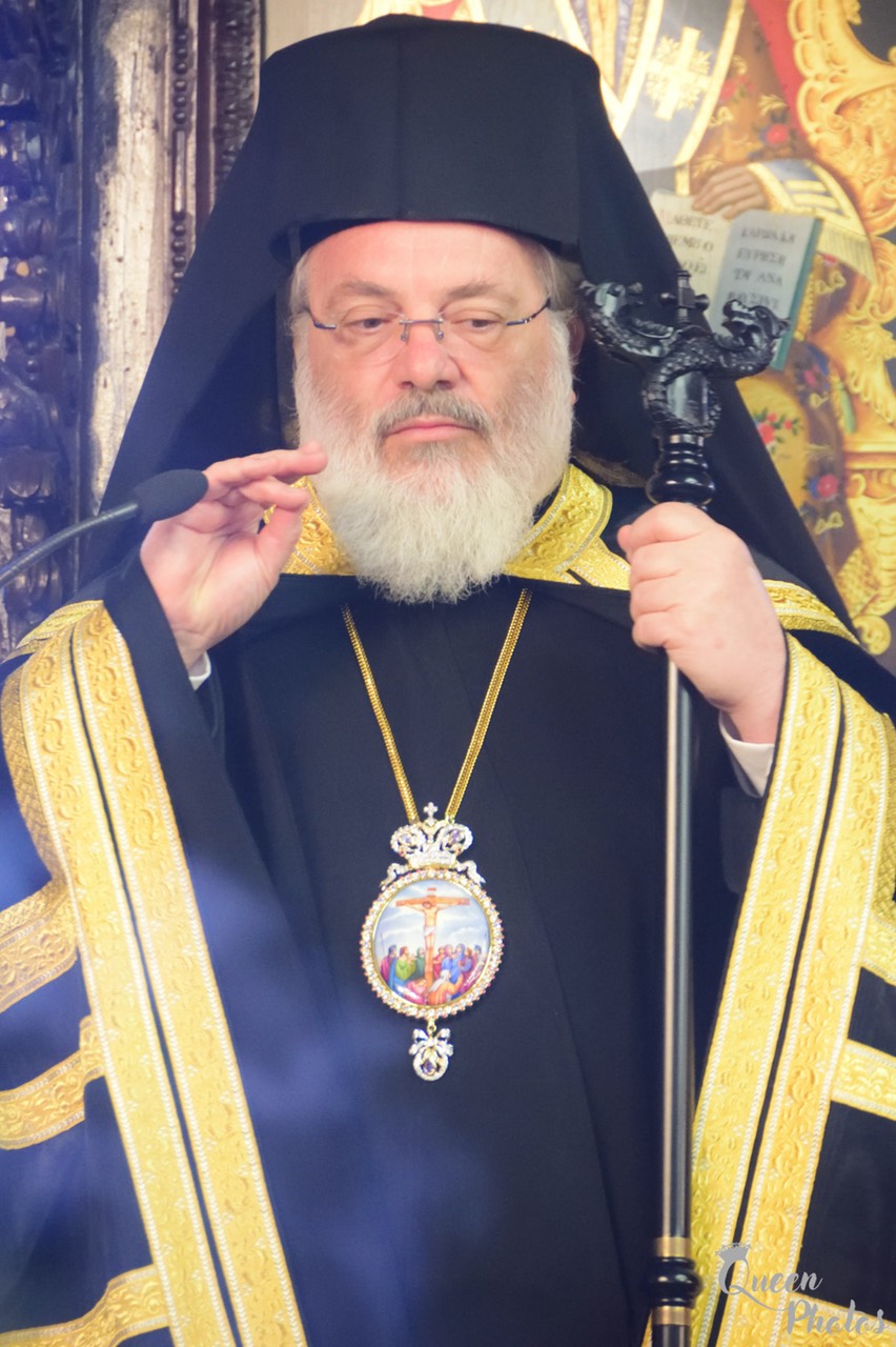 Προ του πέρατος της Θείας Λειτουργίας ο Σεβασμιώτατος συνεχάρη τον προϊστάμενο του Ναού Αρχιμ. Νικόδημο Σκλέπας, για την φιλόθεη και ένζηλη διακονία του.