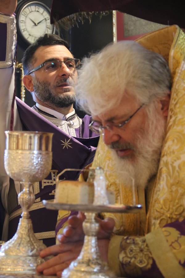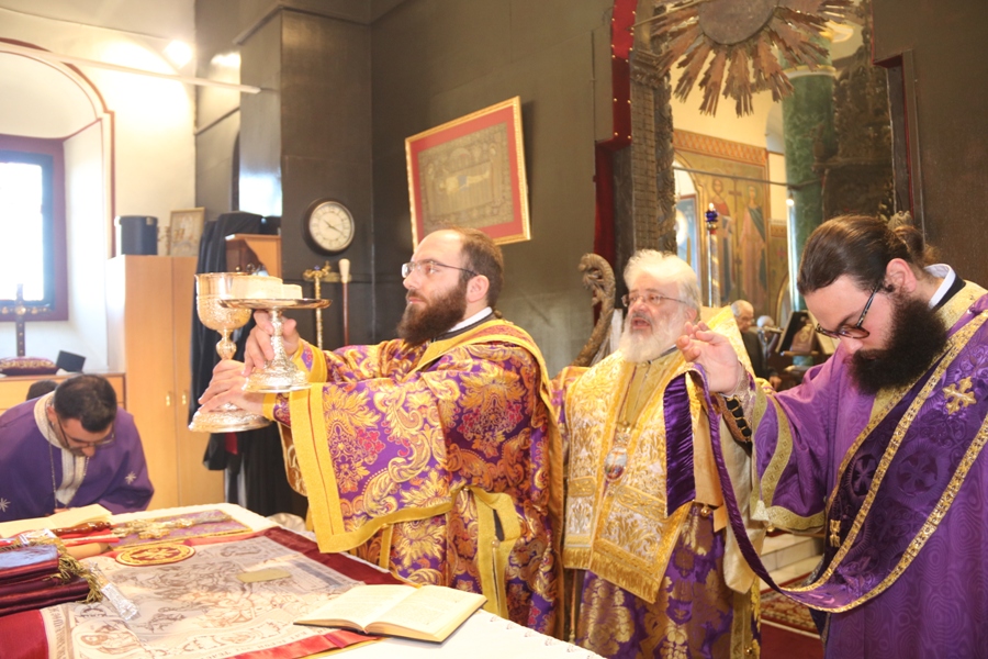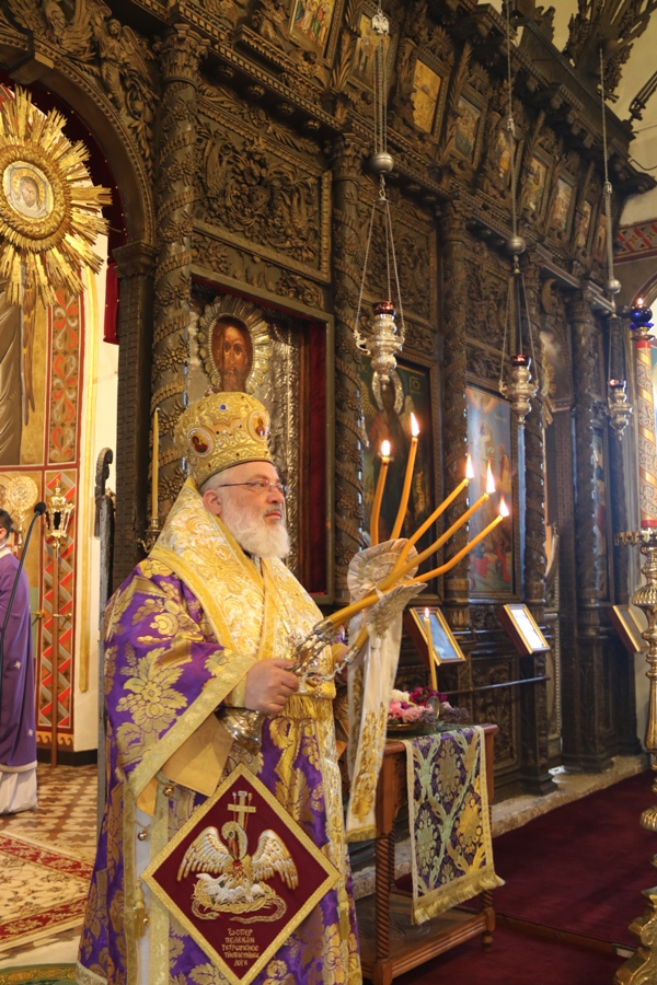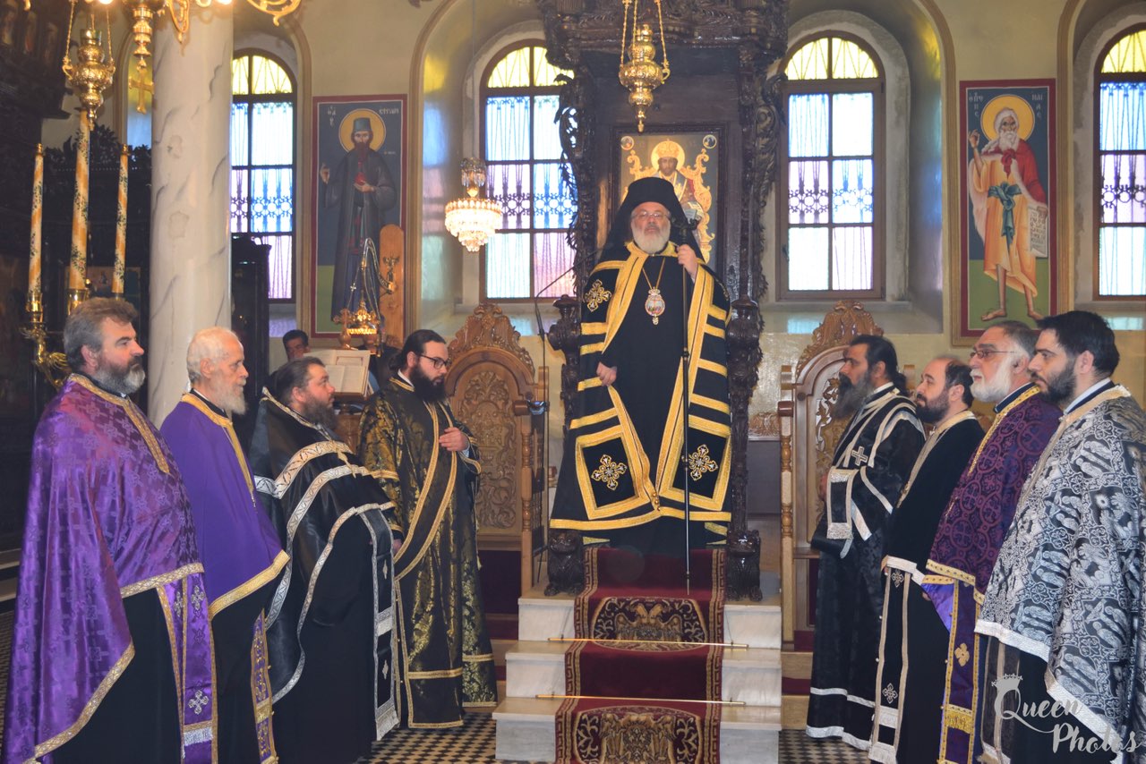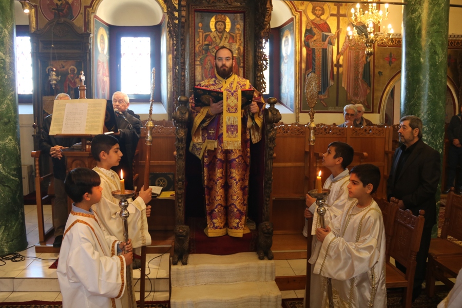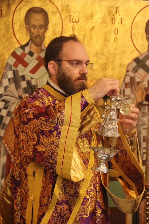 Προ του πέρατος της Θείας Λειτουργίας ο Σεβασμιώτατος συνεχάρη τον προϊστάμενο του Ναού Αρχιμ. Νικόδημο Σκλέπας, για την φιλόθεη και ένζηλη διακονία του.