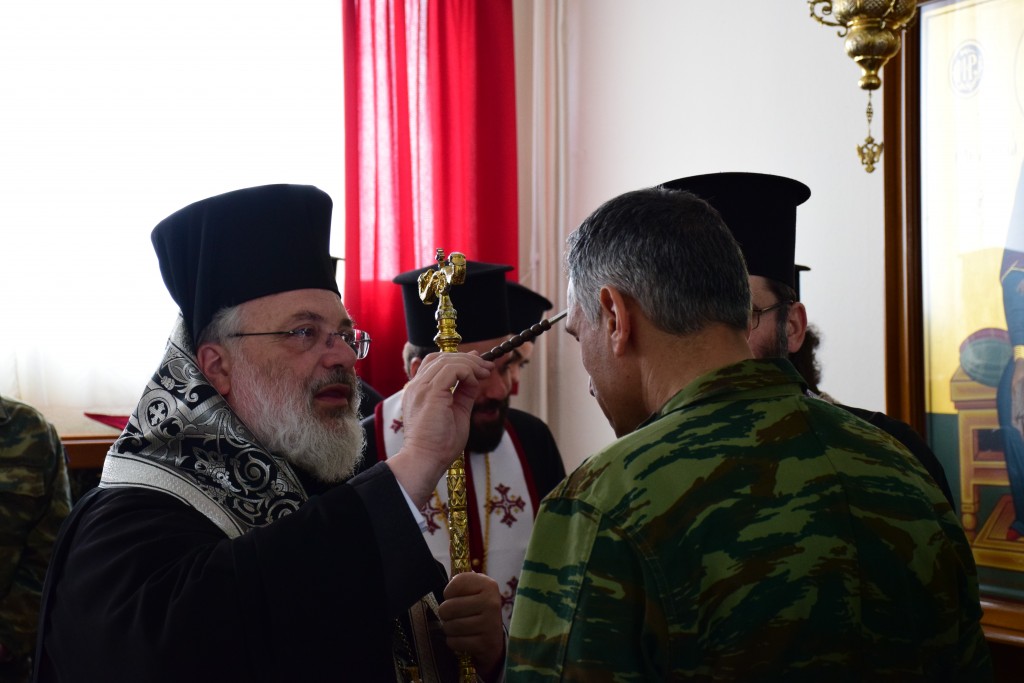 Ο Σεβασμιώτατος είχε την ευκαιρία να ερμηνεύσει την αποστολική περικοπή εκ της Καθολικής Επιστολής Ιάκωβου, την αφορώσα στην καθιέρωση του μυστηρίου του Ευχελαίου· «κακοπαθεί τις εν υμίν προσευχέσθω, ευθυμεί τις ψαλλέτω, ασθενεί τις εν υμίν προσκαλεσάσθω τους πρεσβυτέρους της εκκλησίας, και προσευξάσθωσαν επ’ αυτόν αλείψαντες αυτόν ελαίω…» (Ίακ. 5, 13-14), και να εξηγήσει ότι ο Χριστός πρωτίστως θεραπεύει την ασθένεια της ψυχής, την αμαρτία και ύστερα του σώματος καθόσον η πρώτη είναι η πρόξενος της δεύτερης. Τέλος, ευχήθηκε στο στράτευμα την έχει την εξ ύψους δύναμη και ευλογία για να επιτελούν την υψηλή αποστολή τους, ιδιαίτερα στην ακριτική αυτή περιοχή, όπου τους έταξε η Πατρίδα.