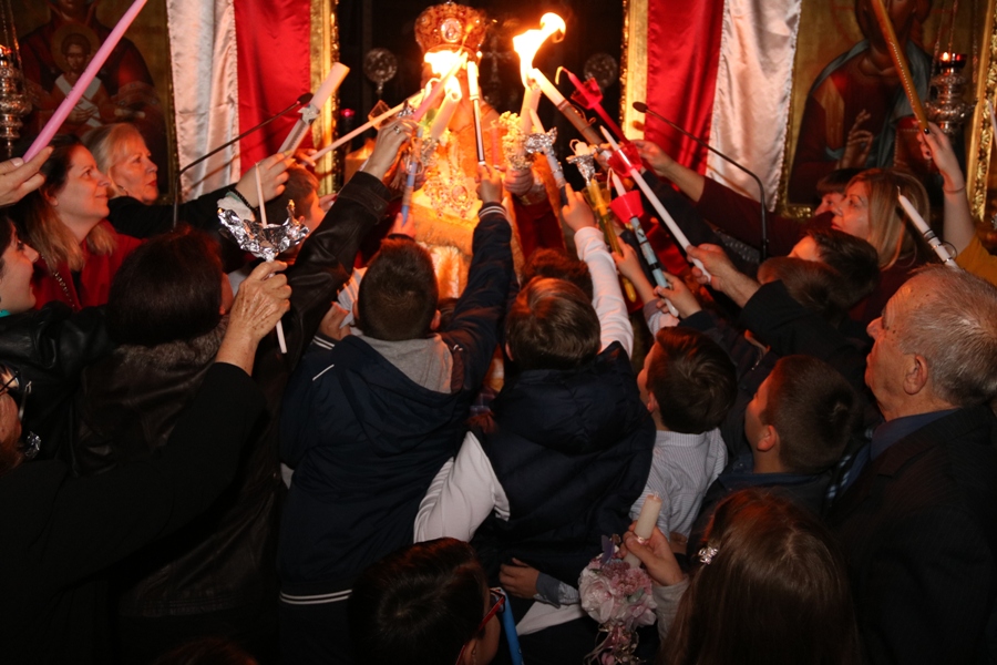 Το πρωί του Μεγάλου Σαββάτου ο Σεβασμιώτατος ιερούργησε στον ίδιο Ιερό Ναό, επί του Ιερού Κουβουκλίου, οπότε και μετέλαβε των Αχράντων Μυστηρίων πλήθος πιστών.