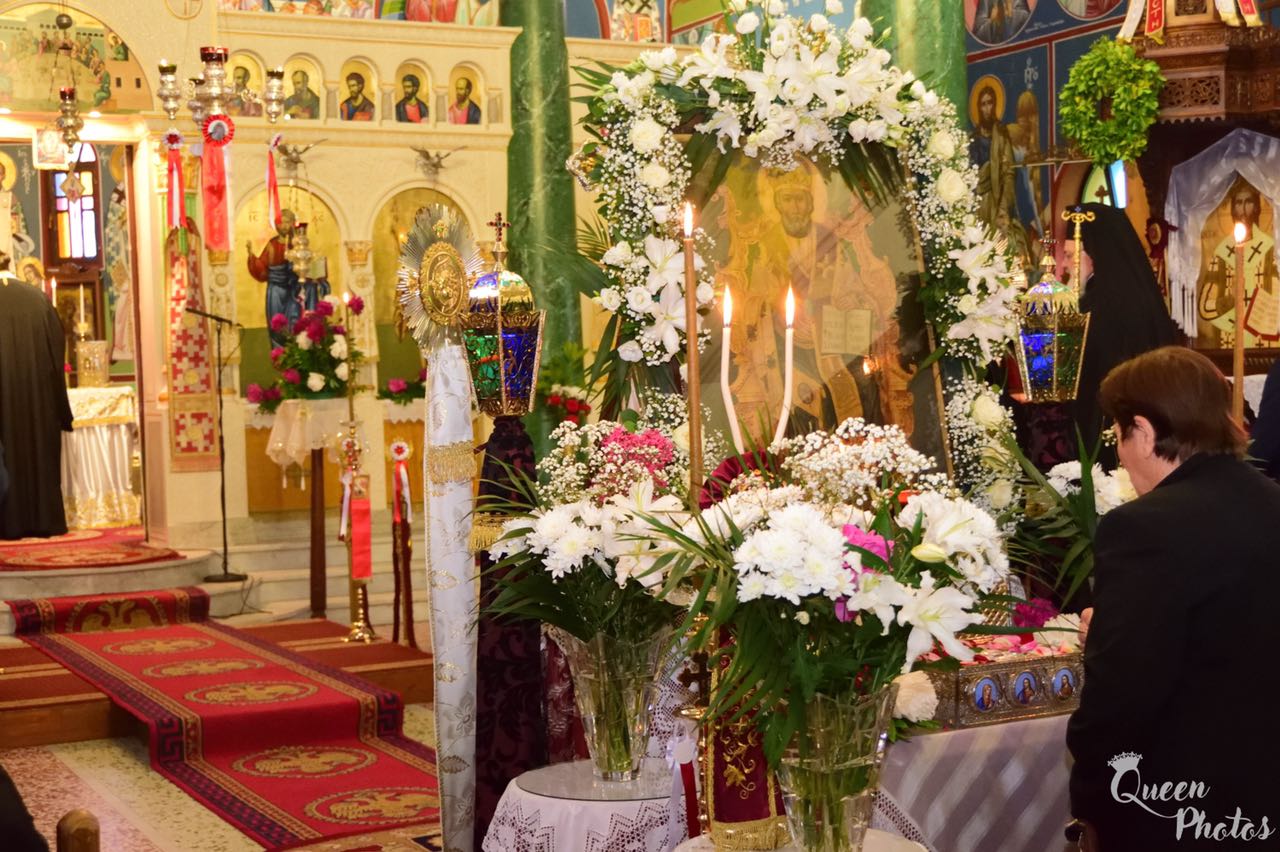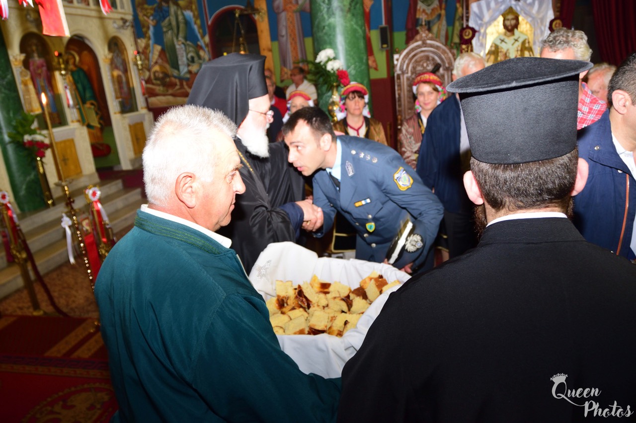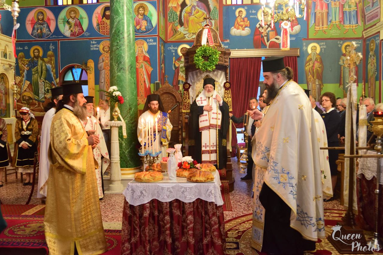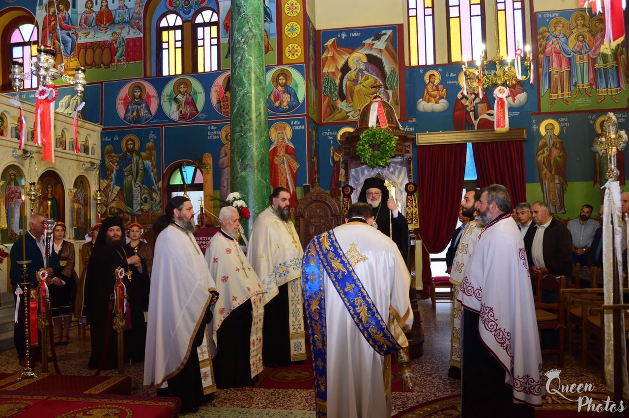 Μετά την υποδοχή των ιερών λειψάνων, που εγένετο στον αύλειο χώρο του Ιερού Ναού, ο Σεβασμιώτατος προέστη του Πανηγυρικού Εσπερινού, ευλόγησε τους άρτους και μίλησε επισημειών ότι «οι άγιοι της πίστεώς μας σήκωσαν το Σταυρό του Χριστού και είναι μάρτυρες του Αναστημένου Σώματος Του, δια τούτο και τα ιερά λείψανά τους με τη Χάρη του Θεού έχουν την ιδιαιτερότητα να μυροβλίζουν και να θαυματουργούν ή να παραμένουν άφθαρτα. Ο Χριστός ενοικεί στους αγίους, ως μέλη του Σώματός Του. Ο σκοπός της Εκκλησίας ως Σώματος Χριστού είναι να κάνει τον άνθρωπο άγιο. Με τα μυστήρια και την ασκητική της αγωγή οδηγεί τον άνθρωπο στην θέωση και τον αγιασμό. Η Εκκλησία είναι εργαστήρι αγιότητος».