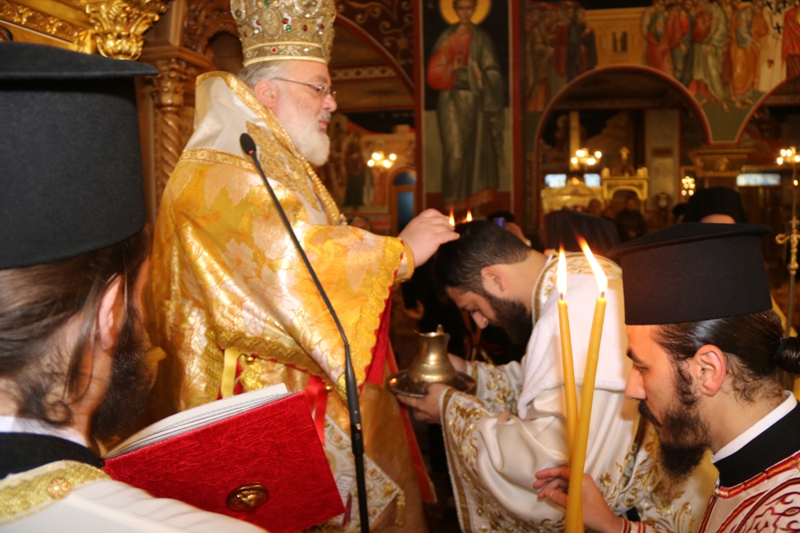 Ο Σεβασμιώτατος εν πληθούση Εκκλησία, παρά τη χιονόπτωση, και παρουσία των αρχών, ιερούργησε στον Καθεδρικό Ναό Παναγίας Ελευθερωτρίας Διδυμοτείχου και χειροτόνησε σε Διάκονο τον εκ Νέας Βύσσης ορμώμενο Νικόλαο Καλφόπουλο, υιό του Αρχιερατικού Επιτρόπου Βύσσης Πρωτοπρεσβ.  Αποστόλου Καλφοπούλου, πτυχιούχο της Παιδαγωγικής Σχολής του Πανεπιστημίου Πλόβντιβ (Φιλιππουπόλεως). Την θεραπεία του ιερού κηρύγματος ανέλαβε ο Αρχιμ.  Κύριλλος Κολτσίδης, Αρχιερατικός Επίτροπος Διδυμοτείχου, ο οποίος, μεταξύ άλλων τόνισε· “Ημέρα πανηγυρική σήμερα, ο ευαγής κλήρος, οι άρχοντες και τα πιστά τέκνα της Τοπικής μας Εκκλησίας συνήχθησαν στον Ιερό Καθεδρικό Ναό της πόλεως μας, προκειμένου να τελέσουμε το Μυστήριο των Μυστηρίων – την Θεια Ευχαριστία – τιμώντας τον Όσιο Ιωάννη τον Δαμασκηνό και να αναπέμψουμε ενθέρμους δεήσεις, υπέρ του πνευματικού μας πατέρα, ο οποίος σήμερα άγει τα ονομαστήρια του, τον οποίον πριν μια δεκαετία, έθετο επί της λυχνίας του Επισκοπικού λειτουργήματος, ο Δομήτωρ της Εκκλησίας. Εκ μέρους του ιερού κλήρου και του πιστού λαού, «επί τη ευσήμω ταύτῃ ημέρα», ζητούμε Σεβασμιώτατε να δεχθήτε τις θερμές και ειλικρινείς συγχαρητηρίους προσρήσεις και τας ολοθύμους ευχὰς όλων μας.   Με την ευκαιρία αυτή αναμιμνησκόμεθα ότι προ δεκαετίας,  την 19η Νοεμβρίου 2009, σε τούτο τον Ιερό Καθεδρικό Ναό τελέσθηκε η ενθρόνιση σας. Ενθυμούμεθα, πανηγυρικά και μεγαλόφωνα, κάτω από τον μεγαλοπρεπή αυτό θόλο, να ηχούν τα «Άξιος!» για την ενθρόνιση του νέου Μητροπολίτου μας, γεμίζοντας χαρά και ελπίδα στις καρδιές του περιεστώτος και δεομένου λαού. Η δεκαετία, παρήλθε, και μη φειδόμενος κόπου και μόχθου  βάλατε τη δική σας την πέτρα και το δικό σας στίγμα στο οικοδόμημα της τοπικής μας Εκκλησίας. Εδώ πρέπει να σημειώσουμε, ότι καρπός αυτής της φιλότιμης και κοπιώδους πολλές φορές προσπάθειας Σας, είναι η στελέχωση του ιερού κλήρου, με νέους και κατηρτισμένους κληρικούς, η ανακαινιση ναών, η ανάδειξη ιστορικών μνημείων, η αναβάθμιση του ποιμαντικού και πνευματικού έργου, η δημιουργία δομών ευποιίας και αλληλεγγύης για τους εμπερίστατους αδελφούς μας· το ανύστακτο ενδιαφέρον για την νεολαία, με τις Κατασκηνώσεις και τις υποτροφίες, η διάσωση θησαυρών πολιτισμού, η προαγωγή της πολιτιστικής κληρονομιάς του τόπου και άλλα πολλά, τα οποία εάν θα ήθελα να απαριθμήσω ασφαλώς, δεν θα επαρκούσε ο χρόνος…”