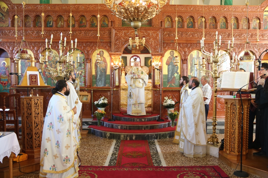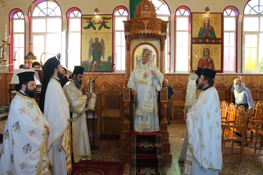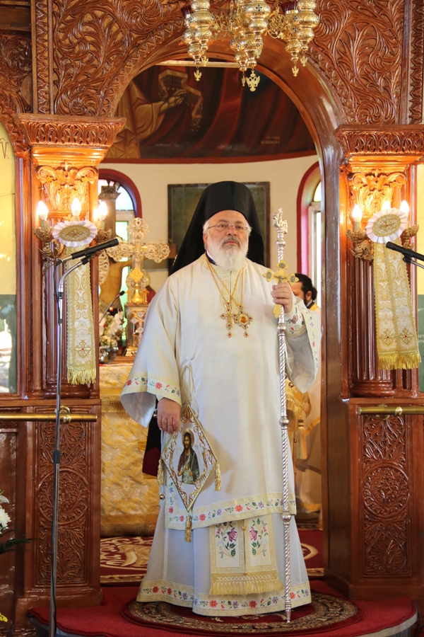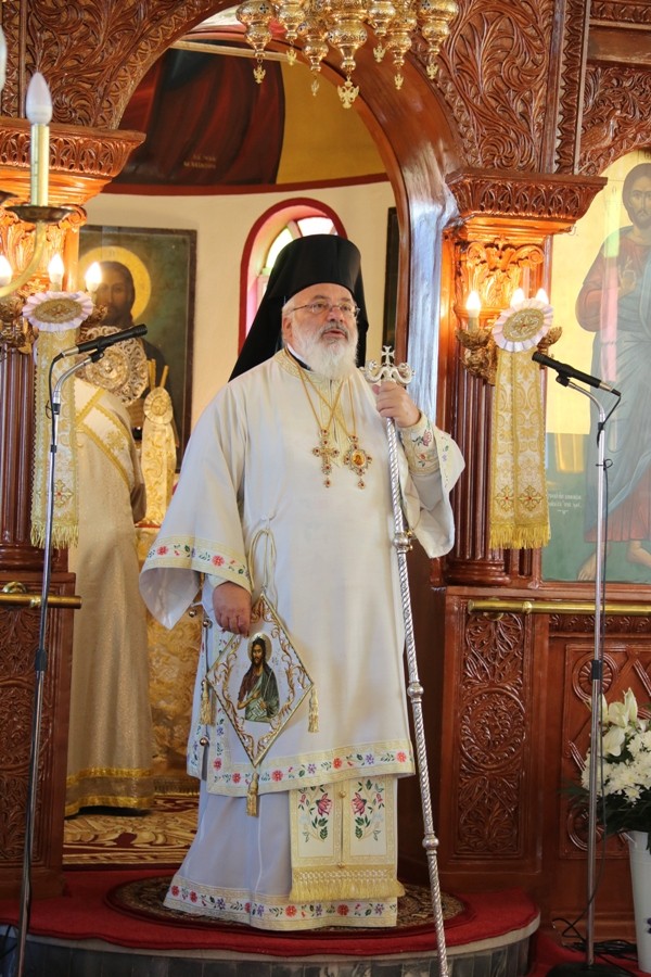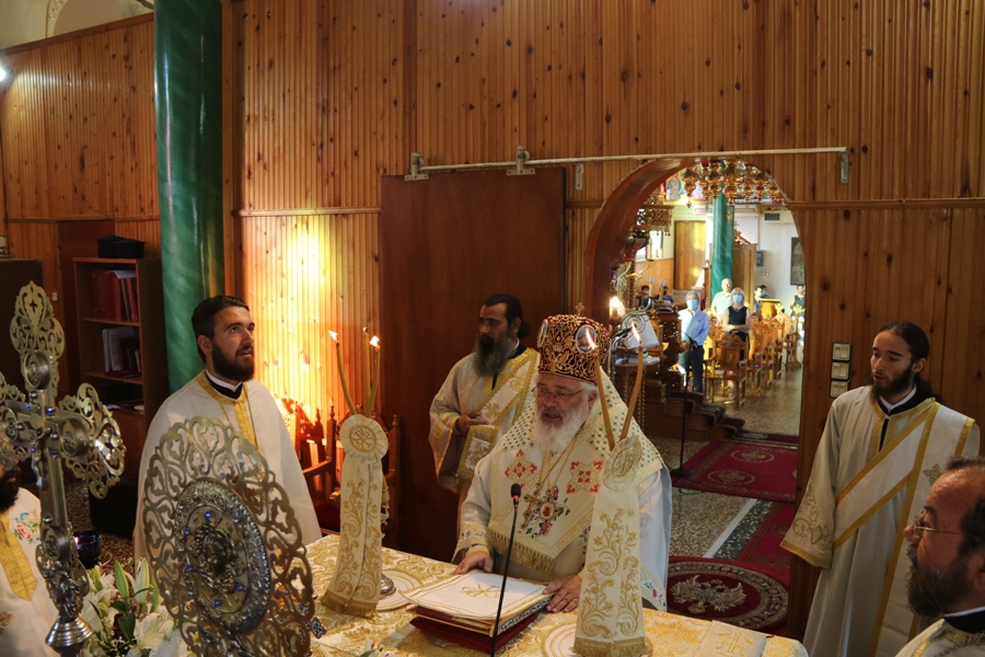 Ο Σεβασμιώτατος, θεραπεύων τις απαιτήσεις του ιερού άμβωνος, ωμίλησε περί του τιμώμενου αγίου ειπών, μεταξύ άλλων· “Ο Τίμιος Πρόδρομος, ως ο τελευταίος των Προφητών της Παλαιάς Διαθήκης και ως ο πρώτος των Αγίων και Δικαίων της Καινής, αναφέρεται με πολλά ονόματα στην Αγία Γραφή και στην Παράδοση της Εκκλησίας μας. Στην Παλαιά Διαθήκη, προφητικά ονομάζεται «φωνή βοώντος εν τη ερήμω». Από αυτήν την προετοιμασία της πορείας του Κυρίου ονομάσθηκε «Πρόδρομος», «η φωνή του Λόγου», «ο λύχνος του Φωτός», «ο Εωσφόρος (δηλαδή ο Αυγερινός) του Ηλίου», «ο φίλος του Νυμφίου» κλπ… Οι πιστοί μας τιμούν τον Τίμιο Πρόδρομο με πολλή ευλάβεια, κάνοντας ακολουθίες, αγρυπνίες, λειτουργίες, πανηγύρια στην μνήμη του, γιατί είναι κοντά στο Χριστό και την Παναγία και μεσιτεύει για όλους όσους με μετάνοια προσέρχονται και ζητούν την βοήθειά του. Και όσοι ακούουν και διαβάζουν το βίο του, διδάσκονται πως πρέπει να παραμένουν αγνοί και πεντακάθαροι, όπως εκείνος που αξιώθηκε να αγγίξει με τα αγιασμένα χέρια του «την κορυφή του Δεσπότου». Διδάσκονται, πως πρέπει να είναι ταπεινοί όπως εκείνος, που ενώ άκουγε από το στόμα του Χριστού -πως «κανείς άλλος, δεν γεννήθηκε από γυναίκα τόσο μεγάλος, όσο ο Ιωάννης», αυτός ισχυρίζετο: «Δεν είμαι εγώ ο Χριστός, ούτε ο Μεσσίας, ούτε ο Ήλιος της δικαιοσύνης. Είναι Εκείνος που έρχεται οπίσω μου, και δεν είμαι άξιος εγώ ούτε τον ιμάντα των υποδημάτων Του να λύσω»… Όμως, πέρα από όλα αυτά, ο Πρόδρομος είναι ο έλεγχος «ουκ έξεστι σοι έχειν την γυναίκα του αδερφού σου»… Πόσα, άραγε, «ουκ έξεστι σοι» δεν βροντοφωνεί και σήμερα, στον καθένα μας ξεχωριστά; στο γιο και την θυγατέρα για την παρεκτροπή· στη μάνα και τον πατέρα για την απροσεξία και την ένοχη αμέλεια· στον εργάτη για τον γογγυσμό και την επιπολαιότητα· στον εργοδότη για την κακή μεταχείριση και εκμετάλλευση· στον μαθητή και στο δάσκαλο, στον επαρχιώτη και τον πρωτευουσιάνο, στο μορφωμένο και των αμόρφωτο, που πατούν πάνω στο Ευαγγέλιο και στο δίκαιο, για να μη ζημιωθούν τα συμφέροντά τους. Σε όλους μας έχει να πει κι από ένα ή περισσότερα «ουκ έξεστι σοι» ο αετός της ερήμου. Αλλά πρέπει να οξύνουμε την ακοή μας, να ευαισθητοποιηθούμε στο κάλεσμα του και να συνετισθούμε. Γιατί έτσι όπως πορευόμεθα μακριά από την Εκκλησία, μακριά από τη στράτα του Θεού, η τραγική φωνή του μεγάλου ερημίτου, δεν θα ηχεί παρά ως «φωνή βοώντος εν τη ερήμω»…”