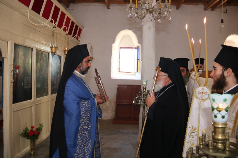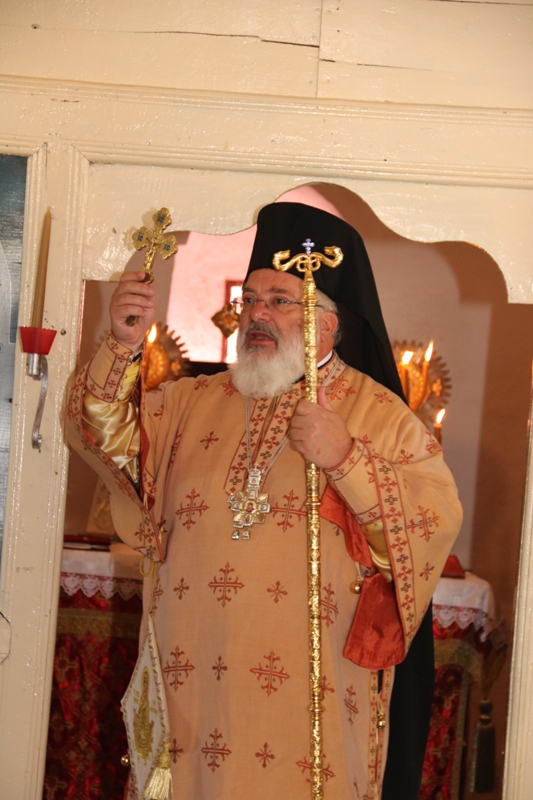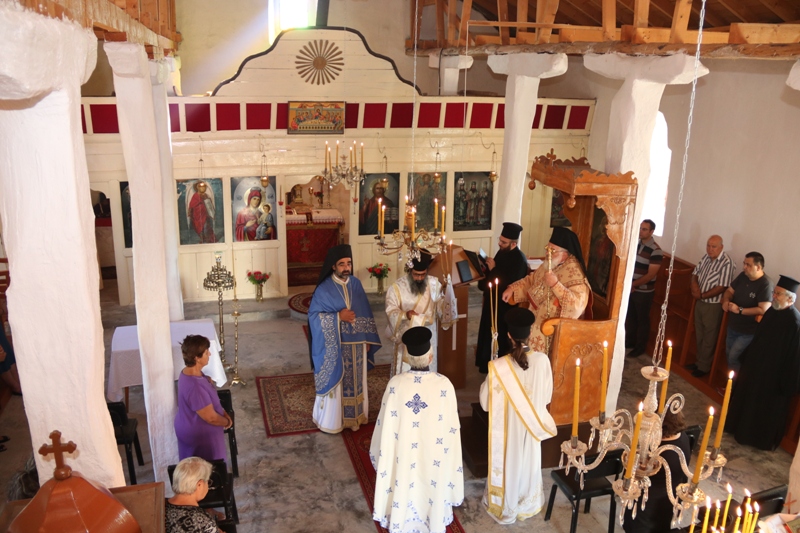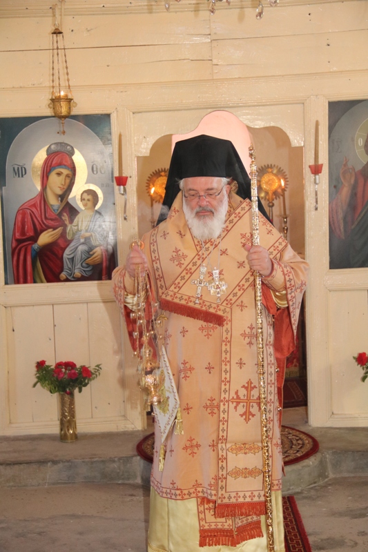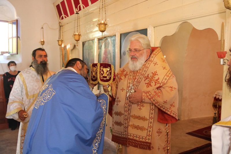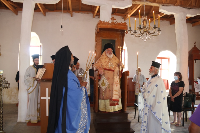 Ο Σεβασμιώτατος ιερούργησε στον παλαιό Ναό της ενορίας, ο οποίος οικοδομήθηκε το 1851 και εκτίσθη με την συνδρομή των κατοίκων του χωριού Κρουσόβου, όπως ελέγετο το χωριό Κόρυμβος στα χρόνια της Τουρκοκρατίας. Ο Ναός ευρισκόμενος σε ερειπιώδη κατάσταση προ δεκαετίας επισκευάστηκε εκ βάθρων και παρεδόθη και πάλι στην θεία λατρεία με τη συνδρομή της Ιεράς Μητροπόλεως και το ανύστακτο ενδιαφέρον του Σεβασμιωτάτου Ποιμενάρχου μας.