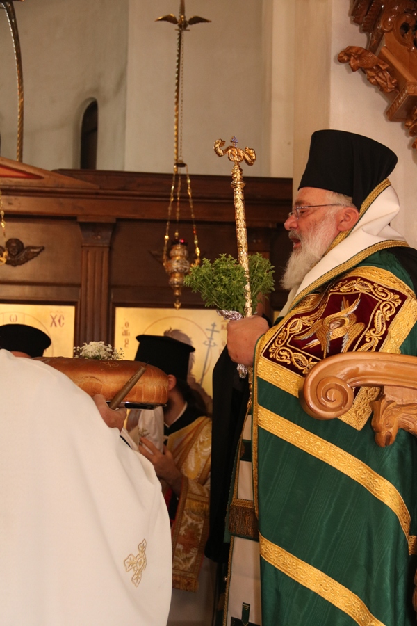 Το εσπέρας της παραμονής ο Σεβασμιώτατος χοροστάτησε στην ακολουθία του Μεγάλου Εσπερινού στον πανηγυρίζοντα νεόδμητο Ιερό Ενοριακό Ναό Τιμίου Σταυρού – Αγίου Γεωργίου Στέρνας, του τέως Δήμου Βύσσης, ο οποίος Ναός εγκαινιάσθηκε προ έτους κατά την εορτή της Υψώσεως. Ο Σεβασμιώτατος σχολιάζοντας το εκ του βιβλίου των Παροιμιών δεύτερο ανάγνωσμα της ακολουθίας «Υιέ μή ολιγώρει», μεταξύ άλλων, τόνισε·