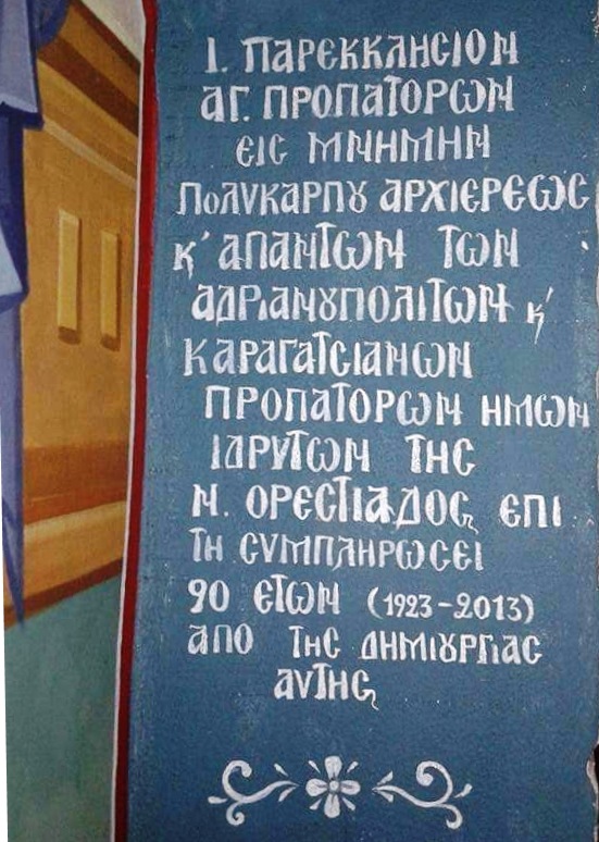 Φέτος, με την ευκαιρία της μνήμης του Αγίου Ορέστου και των Αγίων Προπατόρων, στις 13 του μηνός Δεκεμβρίου ε.ε., ο Σεβ. Μητροπολίτης Διδυμοτείχου, Ορεστιάδος και Σουφλίου κ. Δαμασκηνός, τηρώντας όλα τα περιοριστικά μέτρα, λόγω της πανδημίας, ιερούργησε στον Ιερό Μητροπολιτικό Ναό Αγίων Θεοδώρων Νέας Ορεστιάδος, όπου φυλάσσεται απότμημα των ιερών λειψάνων του Αγίου Ορέστου και στον πρόναο του οποίου υπάρχει προσκυνητάριο, προς τιμήν των αγίων Προπατόρων.