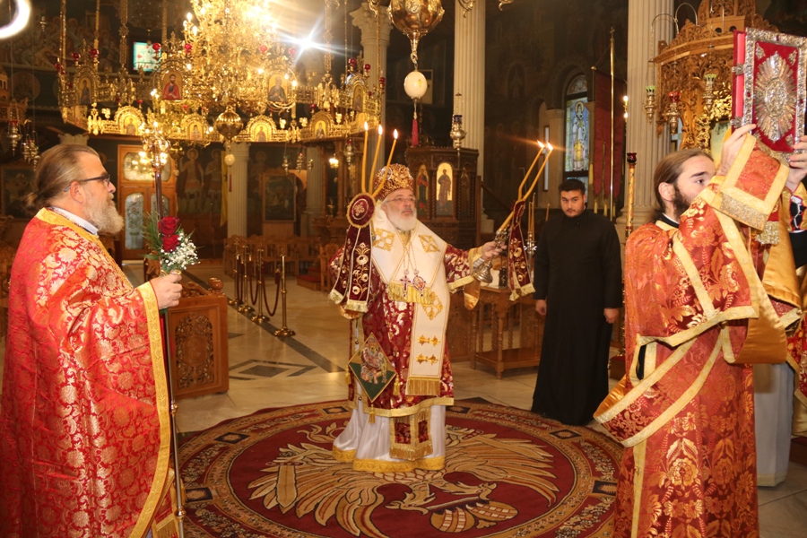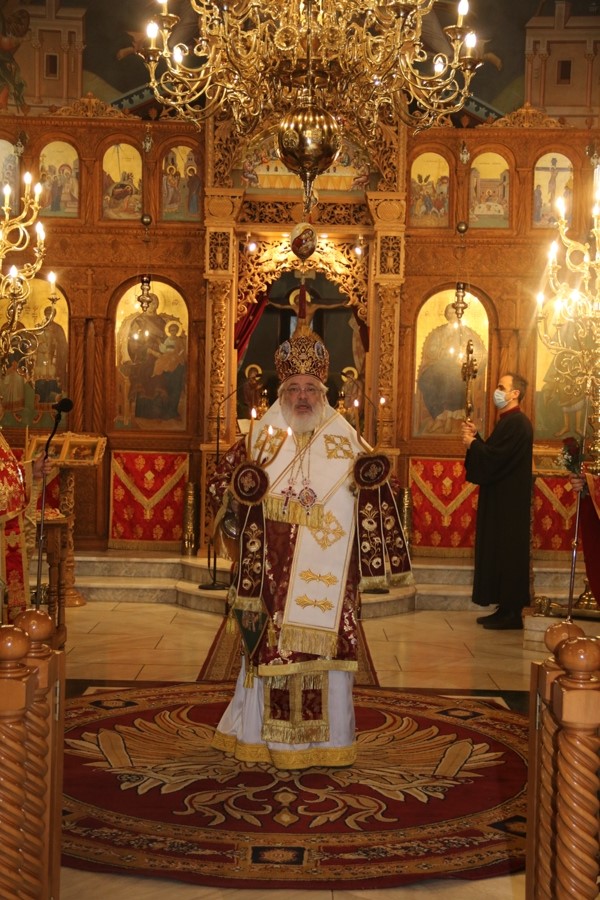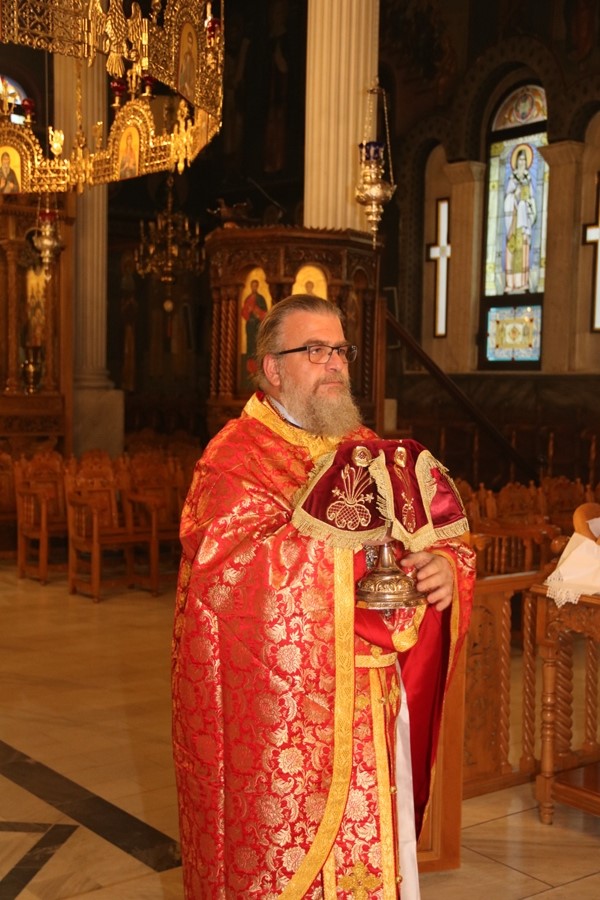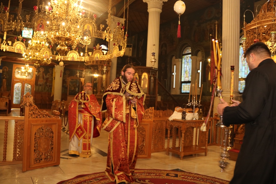 Τον Σεβασμιώτατο στη Θεία Λειτουργία πλαισίωσαν ο Αρχιερατικός Επίτροπος Ορεστιάδος, Αρχιμανδρίτης του Οικουμενικού Θρόνου Βαρθολομαίος Αστεριάδης, ο εφημέριος του Ναού Πρωτοπρεσβύτερος Παναγιώτης Σαββόπουλος και ο νεαρός Διάκονος Ορέστης, ο οποίος φέρει το όνομα του τιμωμένου αγίου.