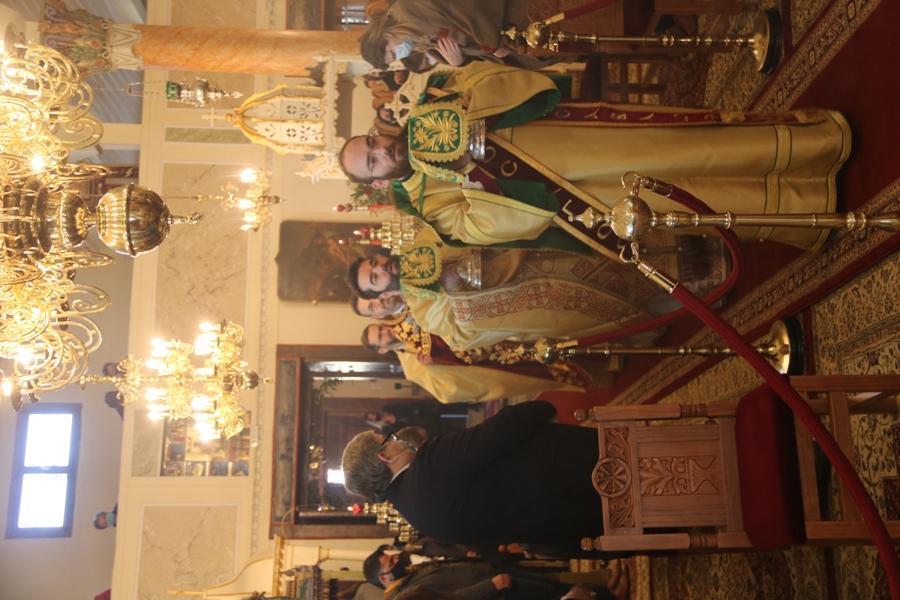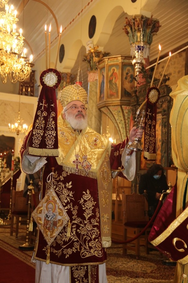 Ο Σεβασμιώτατος προ της απολύσεως της Θείας Λειτουργίας, αφού ευχαρίστησε τους παρισταμένους εκπροσώπους των αρχών, ευχήθηκε στον περιεστώτα λαό υγιεία, υπομονή και πρόοδο και σχολίασε την επικαιρότητα της πανδημίας δανειζόμενος τους λόγους του τιμωμένου Αγίου Αθανασίου· «θαρσεῖτε, νεφύδριον ἐστί καί θᾶττον παρελεύσεται, μήτε θάνατον σωματικόν φοβηθῶμεν… ἀλλά πάντων μᾶλλον προκρινέσθω τῆς ἀληθείας ὁ λόγος» και κάλεσε τους πιστούς να γίνει ο Λόγος του Θεού το κέντρο και το μέτρο της ζωής τους και των επιλογών τους.