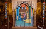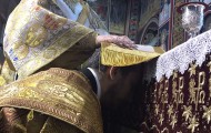 »Αλλά αν η χαρά και η ανέκφραστη αγαλλίαση εκφράζονται από τον πρεσβύτη Συμεών, η Υπεραγία Θεοτόκος βιώνει τον πόνο και την θλίψη. Θλίψη από τα προφητικά λόγια του αγίου Συμεών «και σου την καρδίαν διελεύσεται ρομφαία». Η Παναγία στρατεύεται στον δρόμο του Σταυρού, που είναι το δώρο του Υιού της σ’ ολόκληρο τον κόσμο. Το δώρο αυτό που χαρίζεται και στην ίδια, με μια διπλή επίπτωση. Της χαράς για την σωτηρία και την λύτρωση από τη μια, της θλίψεως της μητρικής καρδιάς της, από την άλλη, μπροστά στην άρνηση αποδοχής από τον κόσμο του Υιού και Θεού της. Άρνηση που θα φθάσει μέχρι τον σταυρικό θάνατο… Το λυτρωτικό αυτό μήνυμα που αφορά όλο τον κόσμο, υποδηλώνεται από τα δύο περιστέρια, τα οποία προσφέρει ο Ιωσήφ στον Ναό. Δεν ανταποκρίνονται μόνο στην καθορισμένη προσφορά, αλλά συμβολίζουν την θλίψη και την χαρά, τον Σταυρό και την Ανάσταση».