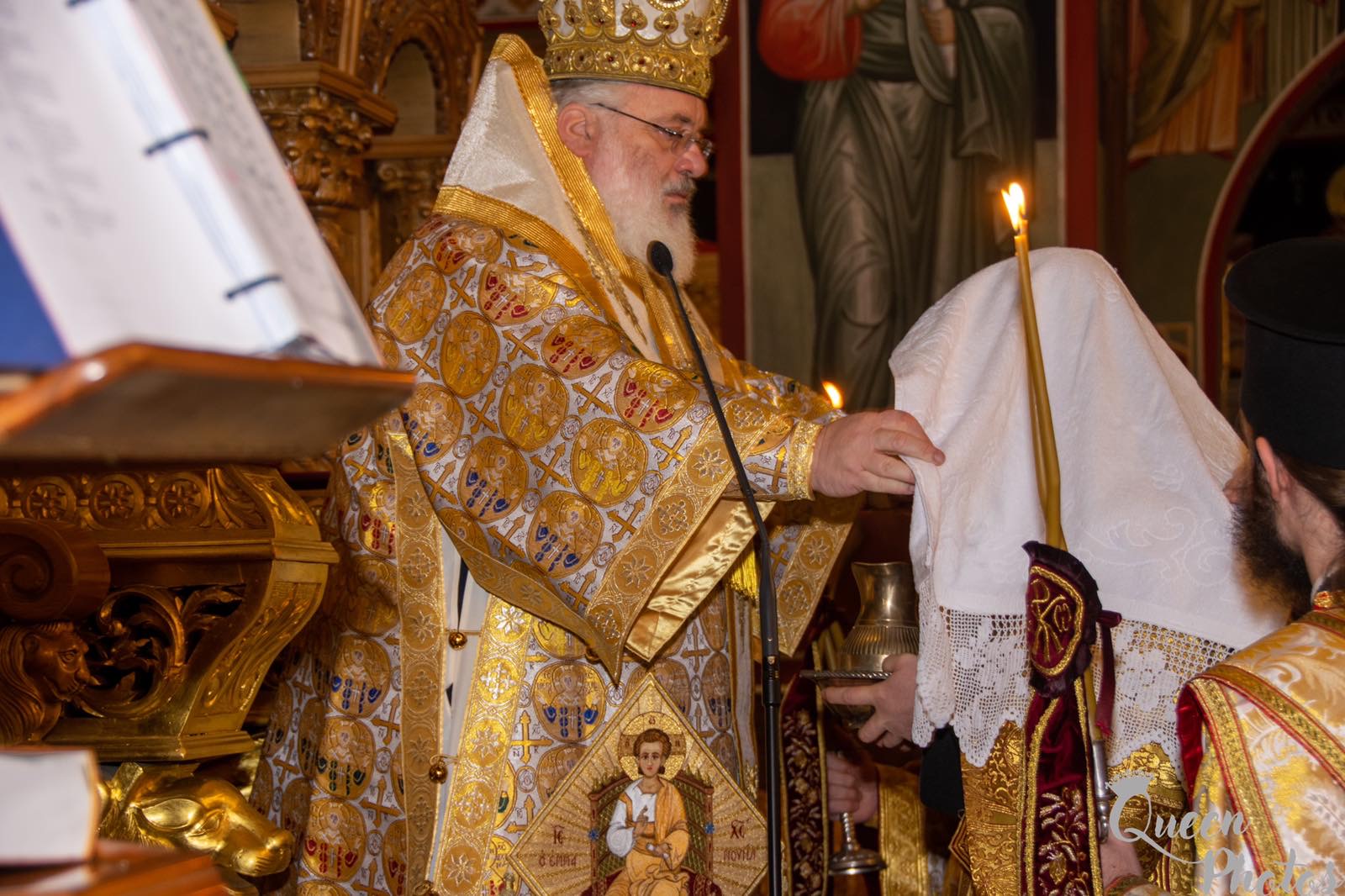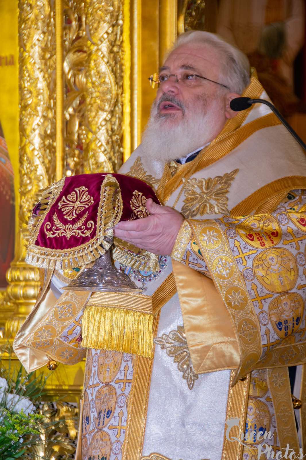 Αναλύοντας ο Σεβασμιώτατος το πλούσιο νόημα της εορτής τόνισε· «Υπαπαντή σημαίνει συνάντηση του Κυρίου με την προσδοκία του κόσμου… Χαρά και λύπη είναι οι δύο συνιστώσες της σημερινής εορτής. Η χαρά εκφράζεται από τον πρεσβύτη Συμεών, τον γέροντα που με τρεμάμενα από το βαθύ γήρας χέρια, υποδέχεται Αυτόν που ανέμενε αιώνες η Παλαιοδιαθηκική ευσέβεια, και διψούσε ο Ιουδαϊκός λαός: τον λυτρωτή του κόσμου. Ο Συμεών, βλέπει την επιθυμία της ζωής του να γίνεται πραγματικότητα και αξιώνεται να γίνει θεοδόχος! Τα πόδια του λυγίζουν από ευλάβεια. Τα μάτια του κοιτούν με δέος «το σωτήριον φως» του θεανθρωπίνου Βρέφους. Τα χέρια του, σκεπασμένα από συστολή και σεβασμό με μια άκρη του ενδύματός του, γίνονται θρόνος για να κρατήσουν Αυτόν που διακρατεί ολόκληρη την οικουμένη. Τα χέρια του πρεσβύτου Συμεών, που με τόση ευλάβεια κρατούν το θείο Βρέφος πάνω από το θυσιαστήριο του Ναού, θυμίζουν την εικόνα των λειτουργών ιερέων που ιερουργούν το μυστήριο του θανάτου και της Ζωής.