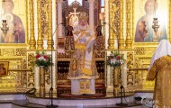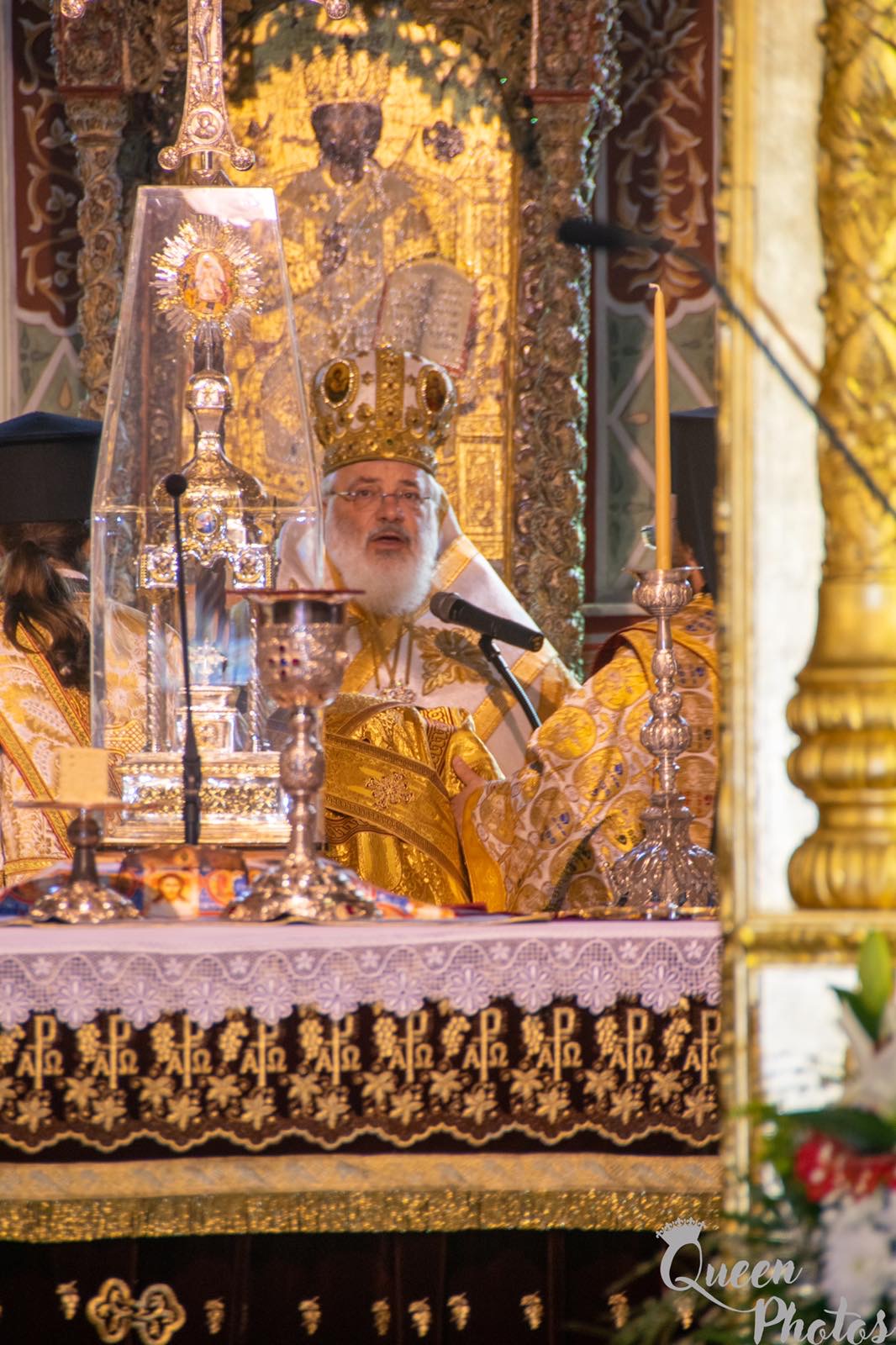 Και συνέχισε λέγων· «Η Εκκλησία σήμερα με αφορμή την εορτή της Υπαπαντής προβάλλει το πρόσωπο της Παναγίας ως την κατεξοχήν Μητέρα και στο πρόσωπό Της τιμά την ιερότητα της μητρότητας. Ως αιώνιο πρότυπο μητέρας η Παναγία, συμπάσχει και συμπονά με κάθε πονεμένο άνθρωπο και αποτελεί μαζί το καταφύγιο και την παρηγοριά όλων των θλιβομένων. Η θλιμμένη εικόνα της από τη ρομφαία, που τη διαπέρασε βλέποντας το Υιό της να πάσχει για την ανθρωπότητα, την καθιστά ένα κατεξοχήν πρόσωπο ευσπλαχνίας και φιλανθρωπίας. Είναι η Μάνα, που πονά και νοιάζεται για τα παιδιά της, για τη θλίψη και την αδικία που κυριαρχεί στον κόσμο· είναι ο συνεχιζόμενος αναστεναγμός για τον πάσχοντα άνθρωπο. Στο πρόσωπό Της οι μητέρες κυρίως βρίσκουν συμπαράσταση και αποκούμπι στην ανησυχία τους για το μέλλον των παιδιών τους, της νεότητας και της οικογένειας γενικώτερα».