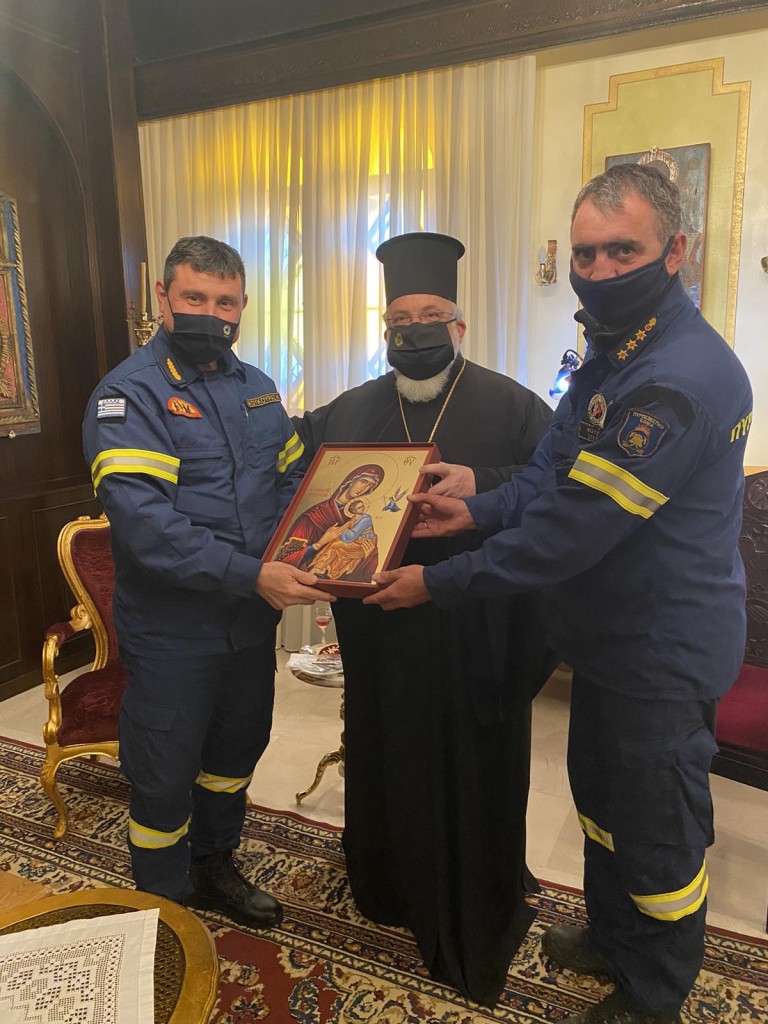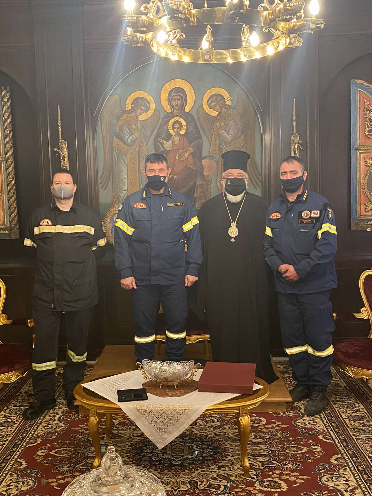 Ο Σεβασμιώτατος με ιδιαίτερη χαρά ευχήθηκε εις αμφότερους επιτυχία στα νέα τους καθήκοντα και εξήρε την πολύτιμη προσφορά της Πυροσβεστικής Υπηρεσίας στον τόπο για την αντιμετώπιση των ποικίλων θεομηνιών και εκδήλωσε για μια ακόμη φορά την ολόθυμη πρόθεση της τοπικής Εκκλησίας να είναι συμπαραστάτις και αρωγός στο υπεύθυνο λειτούργημα που με αυτοθυσία διακονούν.