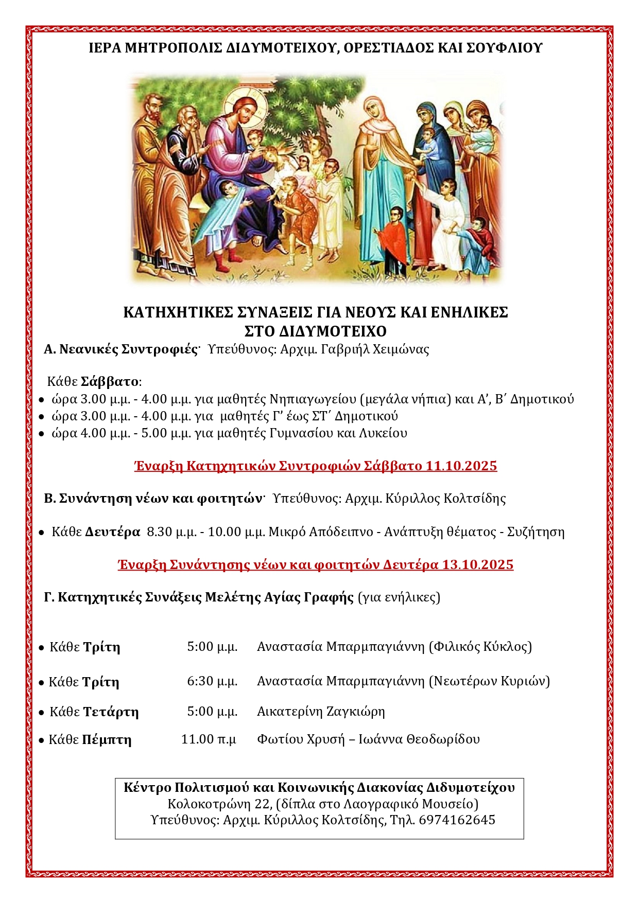 Νεανικές Κατηχητικές Συνάξεις (2020-2021)