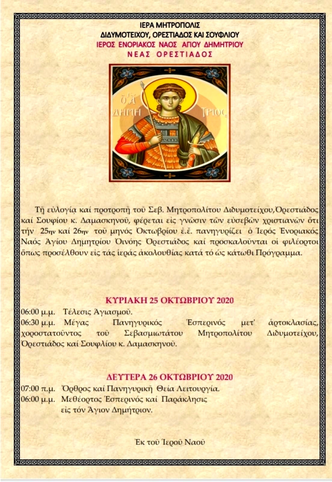 Πρόγραμμα Μητροπολίτου