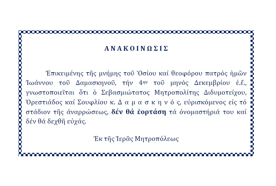 ΠΡΟΣΦΩΝΗΣΗ ΜΗΤΡΟΠΟΛΙΤΟΥ